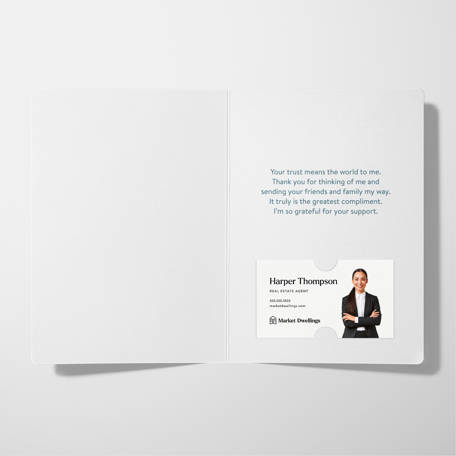 referral thank you card, realtor thank you card, business card slot card, client appreciation card, 5x7 greeting card, peel and stick envelopes