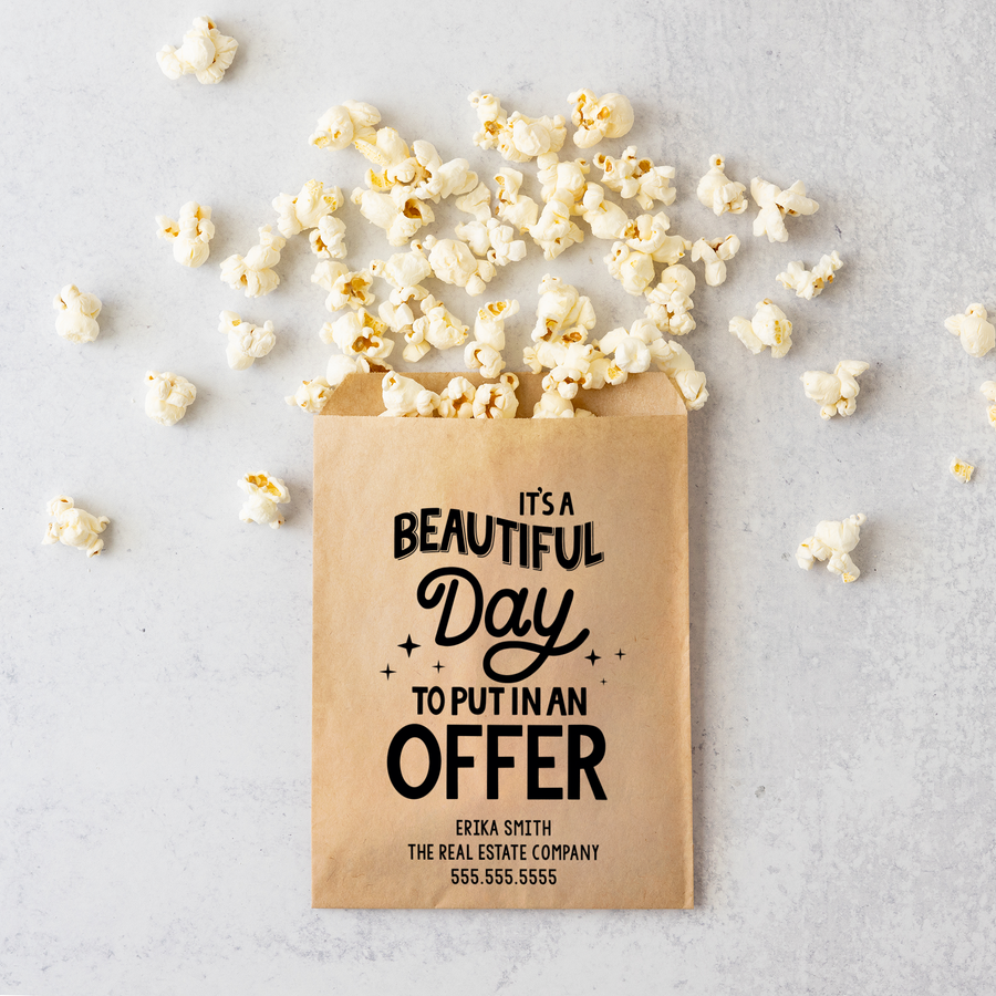 Need something creative to hand out at your next open house? We've got just the thing! These awesome bakery bags are customized with your contact information and will help you stand out. Fill them with cookies, popcorn, pretzels, and other treats. Bags are sold starting in sets of 10.