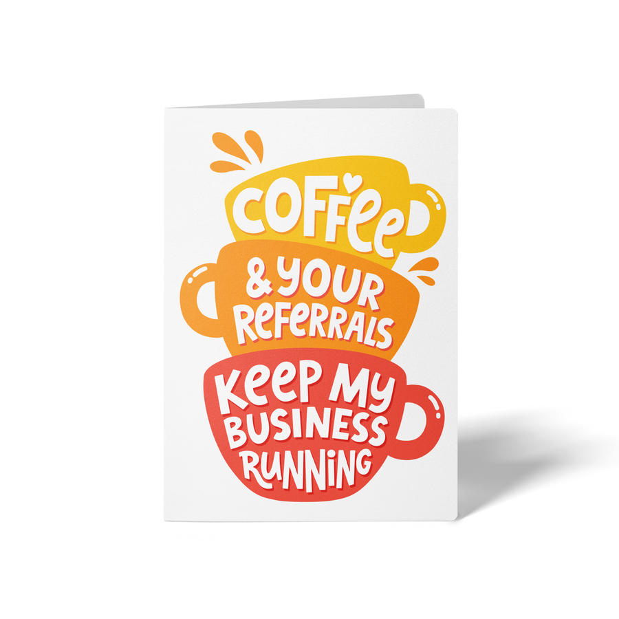 Celebrate the power of coffee and referrals! Order your Coffee and Referrals Greeting Cards today.