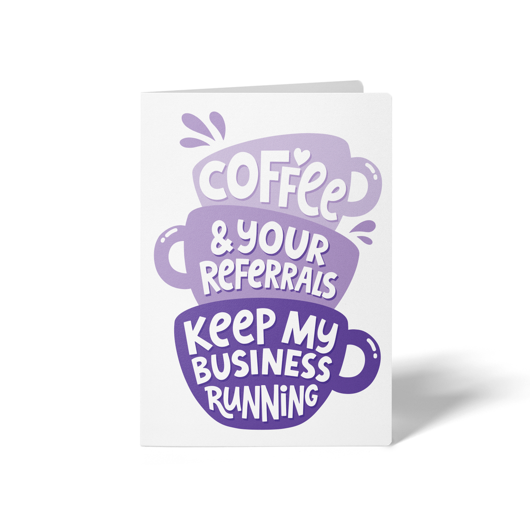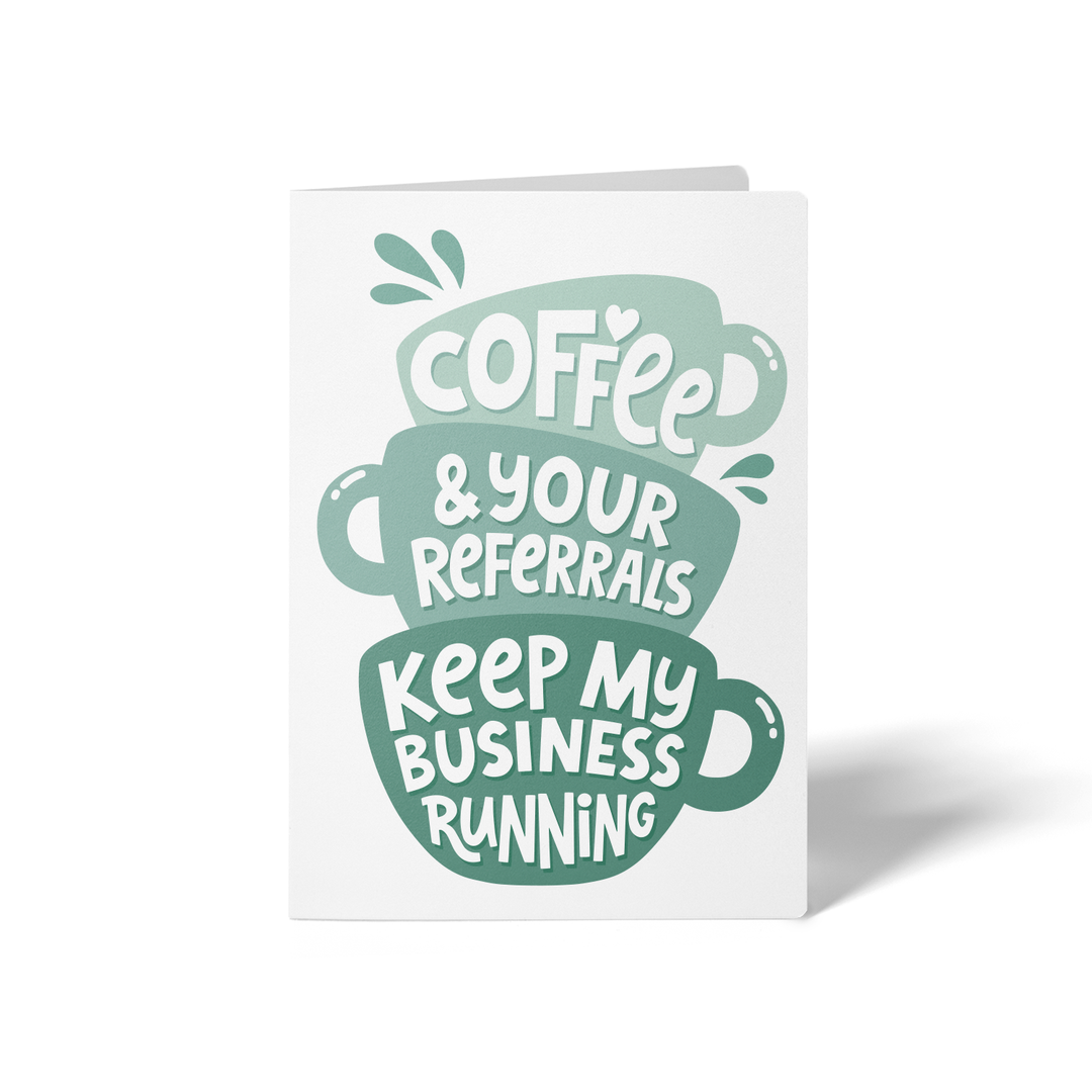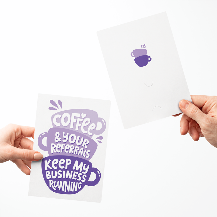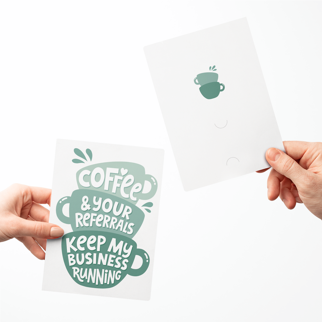 Set of Coffee And Your Referrals Keep My Business Running Greeting Cards | Envelopes Included