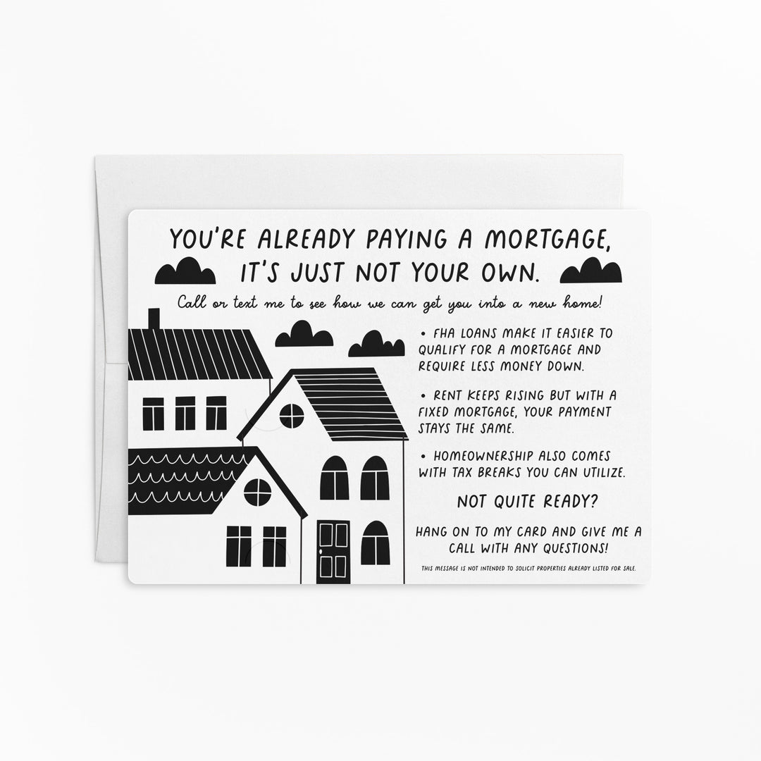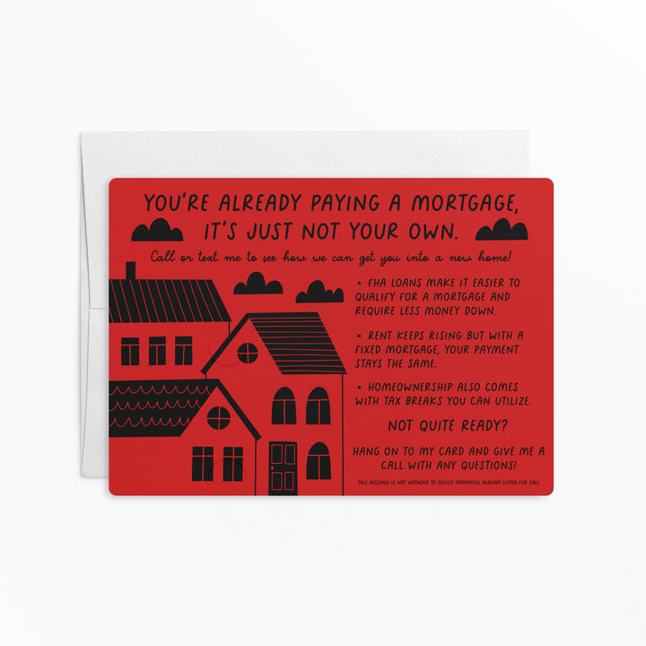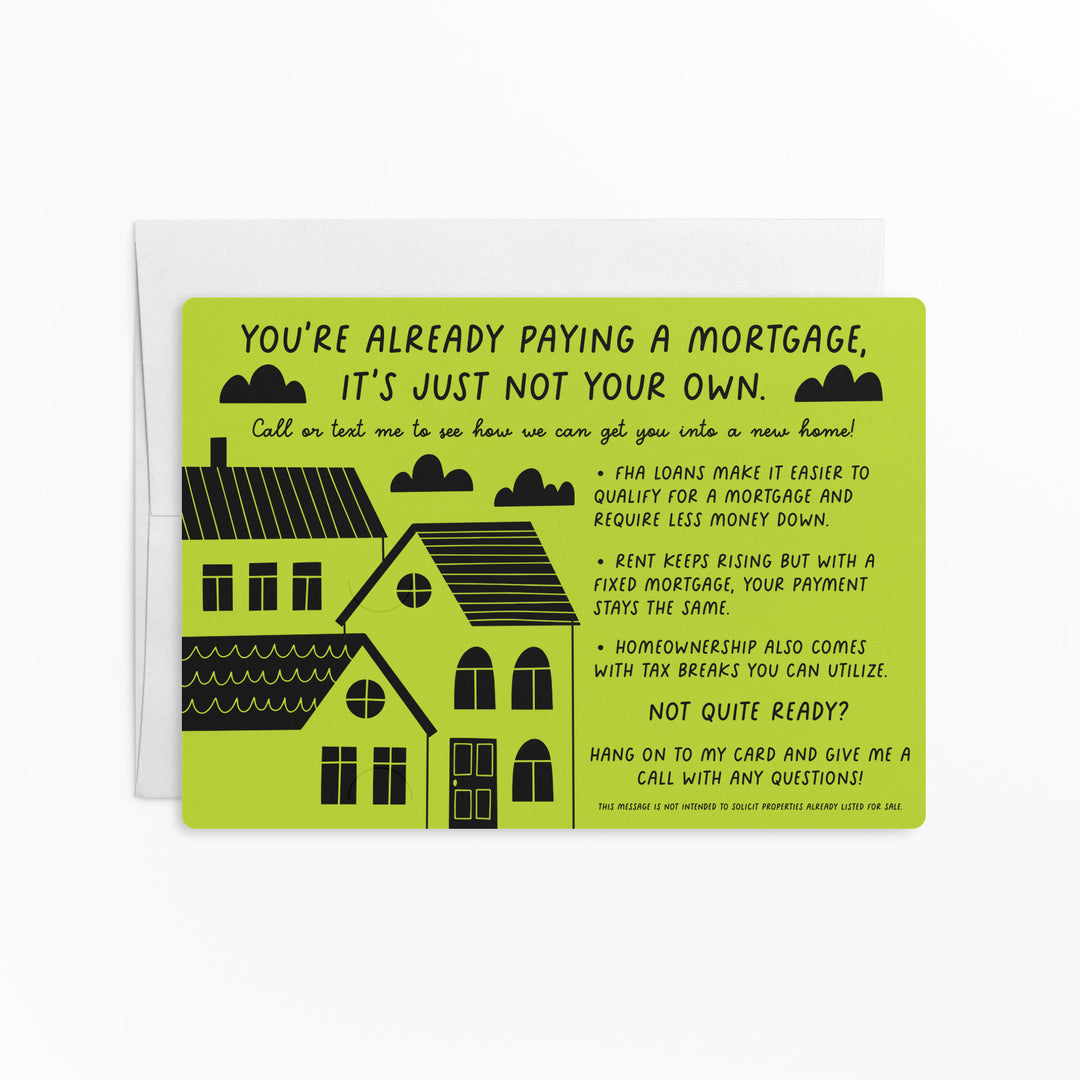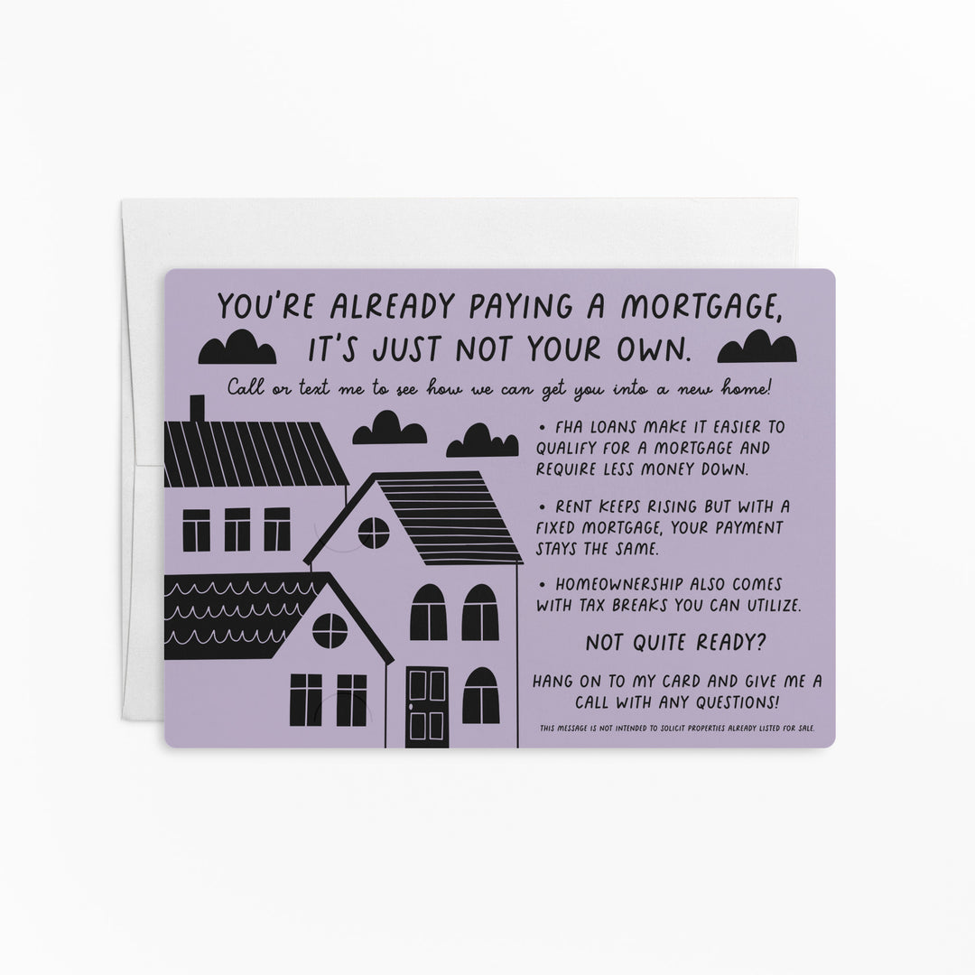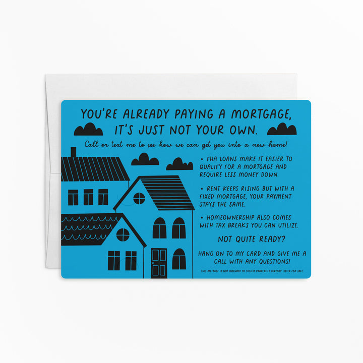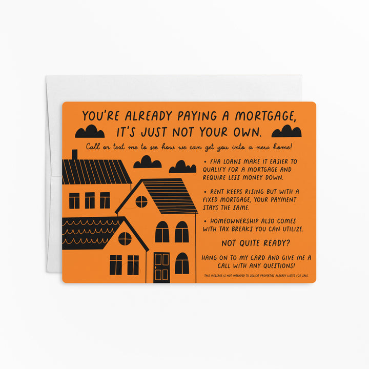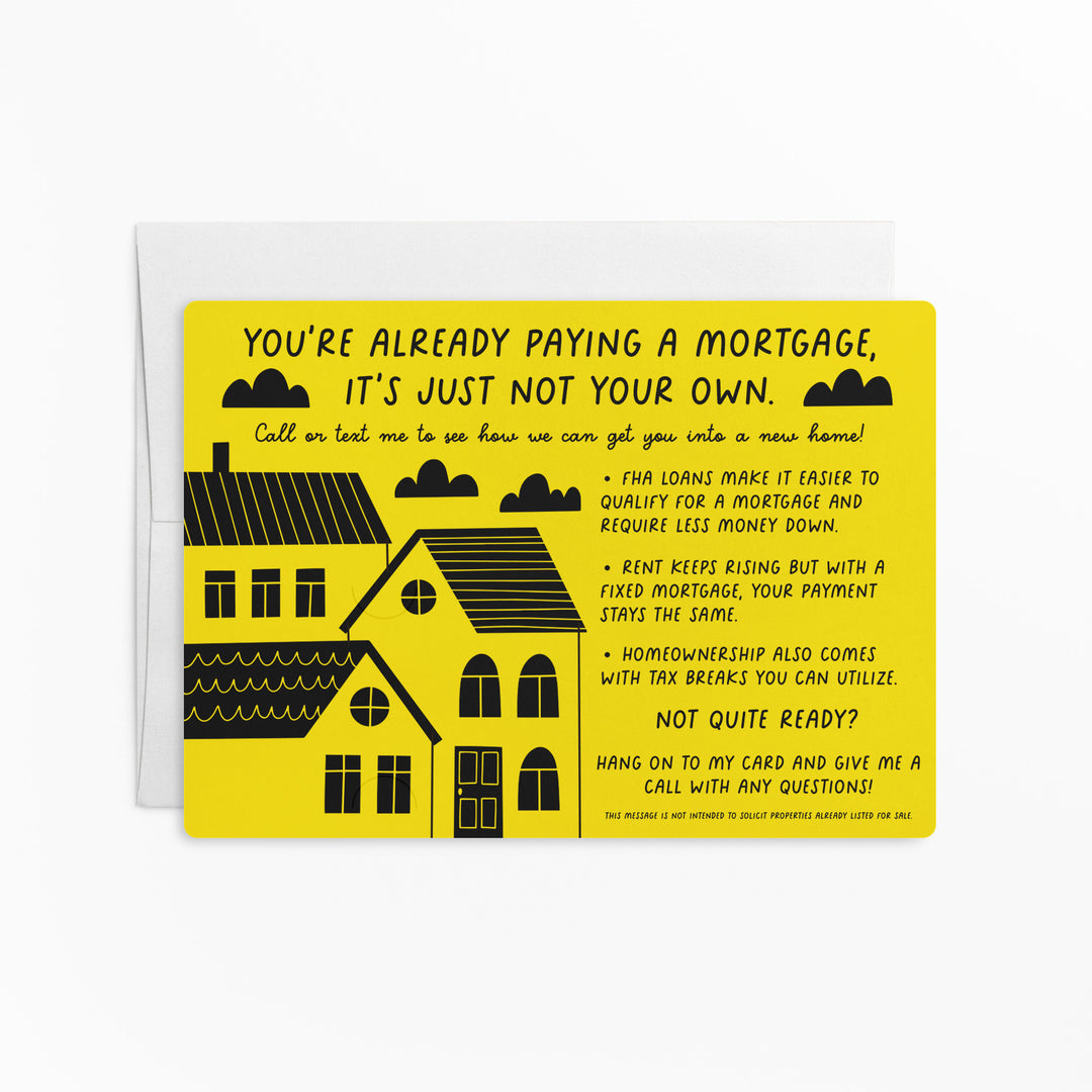 Want to get your name directly in front of potential buyers? What better way than these mailers targeting renters? Their unique look and feel will help you stand out from the rest! This is a great way to capture buyer leads! You can even slide your business card in the slots provided, so the buyer can call you when they're ready to start looking.