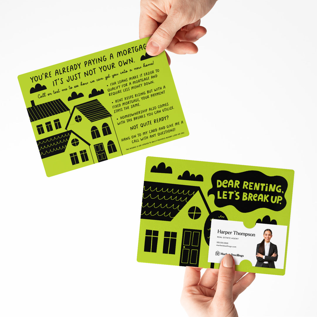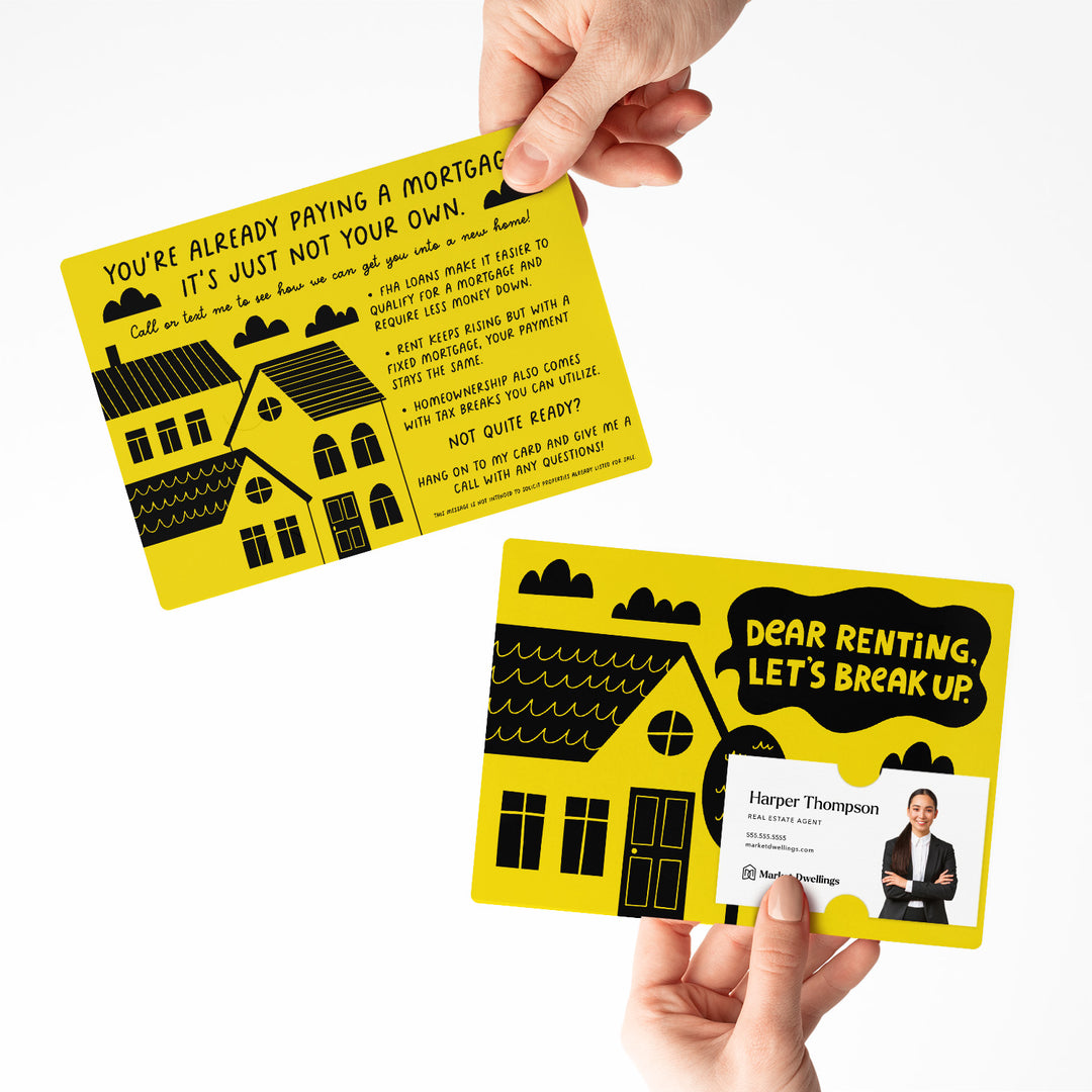 Set of Dear Renting, Let's Break Up. | Mortgage Real Estate Mailers | Envelopes Included | M104-M003