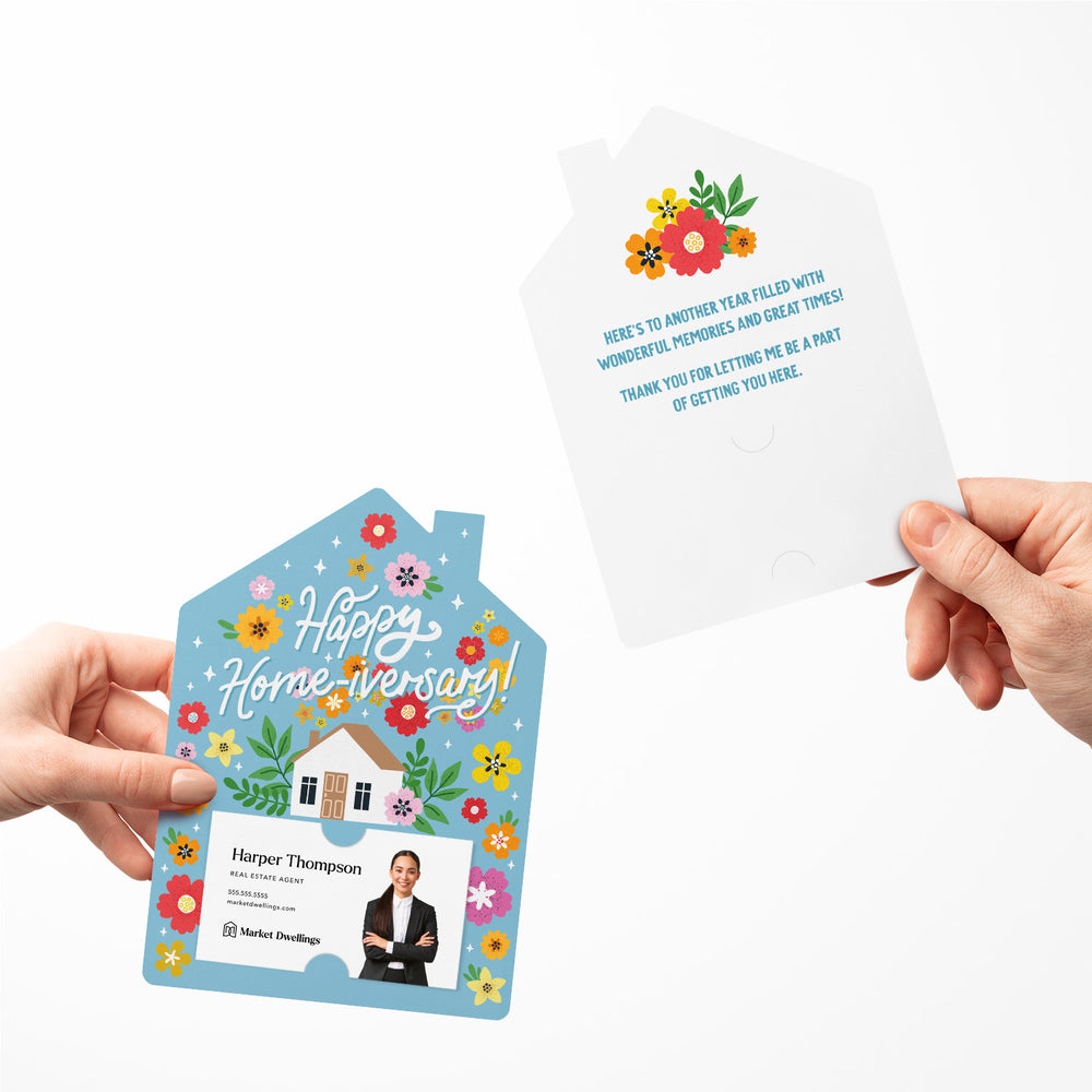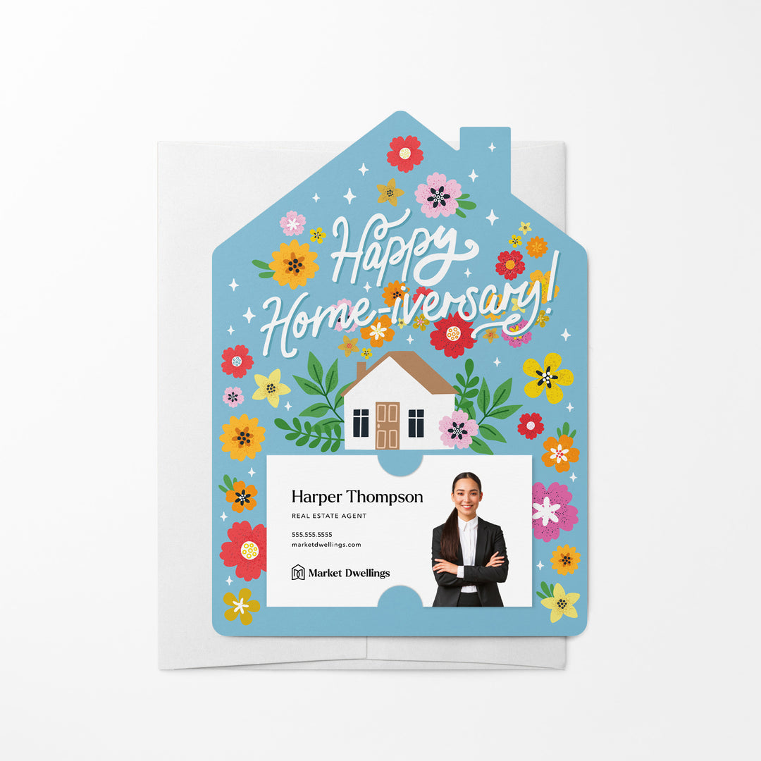 Set of Happy Home-iversary! Mailers | Envelopes Included | Creative Real Estate Client Marketing | Home Anniversary Cards | M128-M001