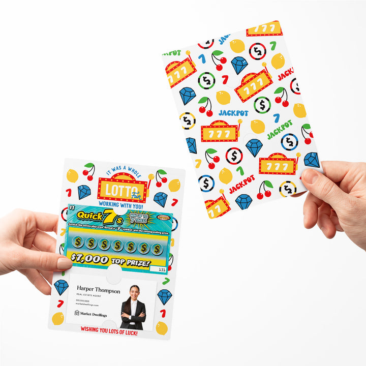 Celebrate your successful partnerships with our It Was A Whole Lotto Fun Working With You! Mailers w/ Envelopes! These creative and cheerful mailers are a fun way to show your appreciation for your clients and collaborators. Featuring slots for a scratch-off ticket and your business card, these mailers combine gratitude and professionalism in a memorable package. Each mailer comes with an easy peel-and-stick white envelope for hassle-free mailing.