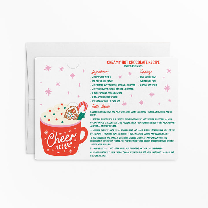 Spread some creative cheer by sending these charming mailers to homes in your target market. You can even insert a gift card and business card in the slots provided so the homeowner can call you when they need a real estate agent! And as an extra treat, you'll find a delightful creamy hot chocolate recipe. White envelopes included.