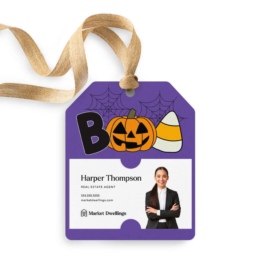 Looking for a unique and thoughtful way to reach out to your clients this Halloween? Look no further than our Boo Halloween Gift Tags! As a real estate agent, building and nurturing relationships is a crucial part of your business. These gift tags provide the perfect opportunity to show your clients how much you appreciate them while also promoting your brand. With a slot to hold your business card, these tags are not only festive but also professional. Add a personal touch to your client gifts this Halloween with our Boo Halloween Gift Tags.