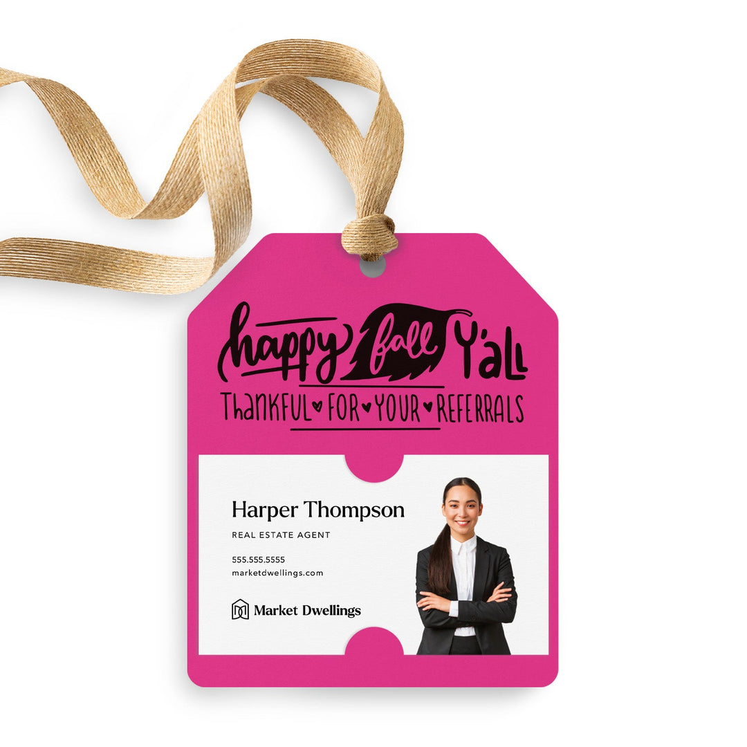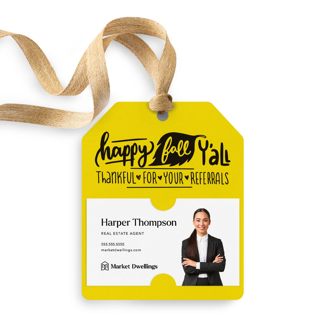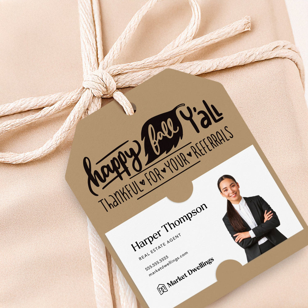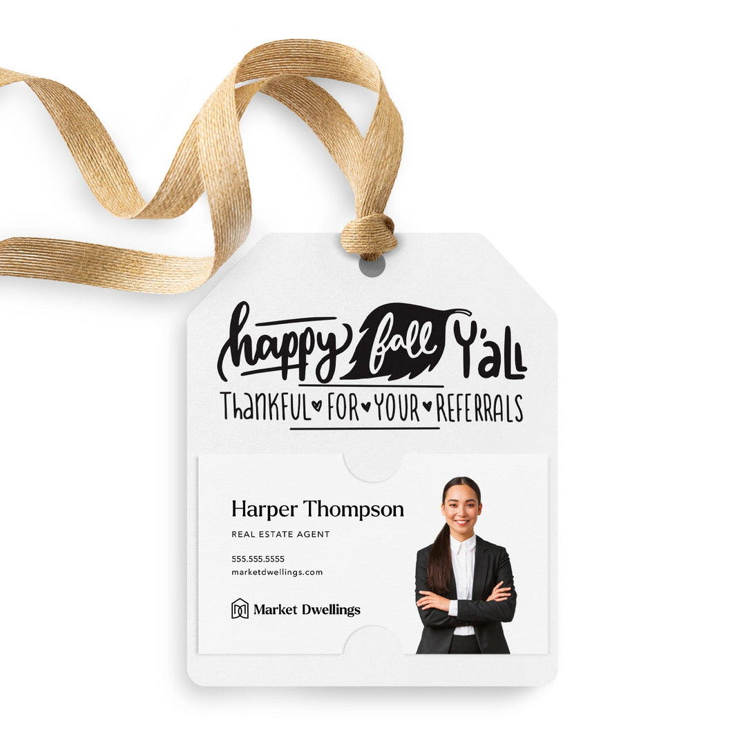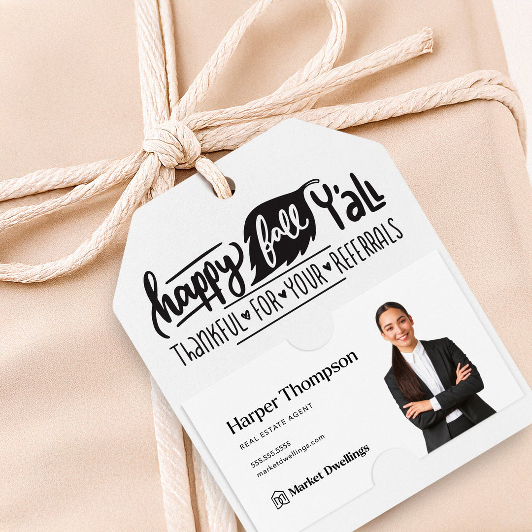 Looking for a thoughtful and professional way to grow your real estate business and nurture client relationships this fall? Look no further than our Happy Fall Y'all Pop By Gift Tags! These charming tags are the perfect way to show your clients that you care while also promoting your business. With slots to hold your business card, these gift tags are a convenient and memorable way to stay top-of-mind with potential clients. Spread some autumn cheer and watch your business blossom this season with our Happy Fall Y'all Pop By Gift Tags.