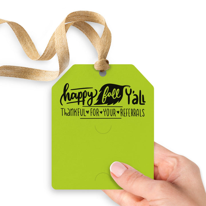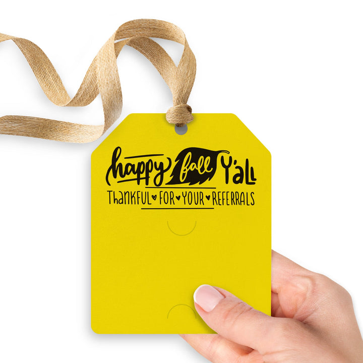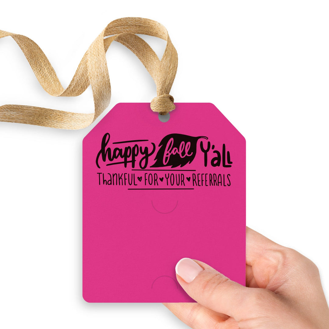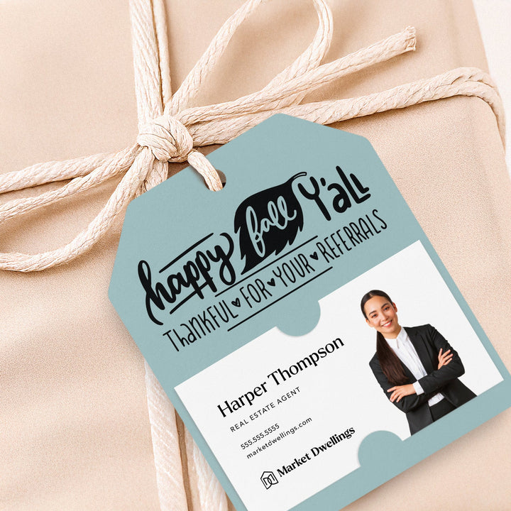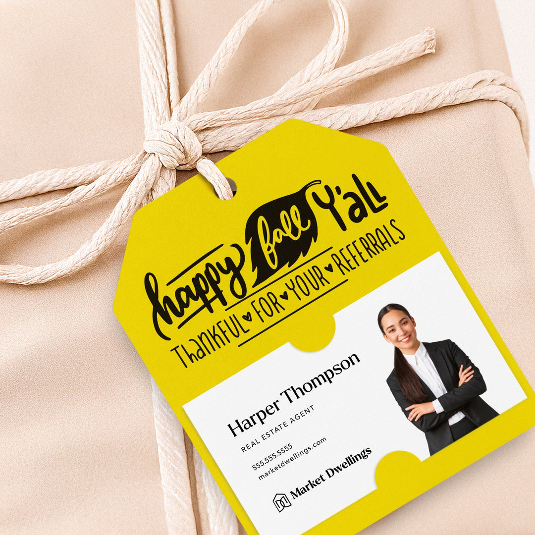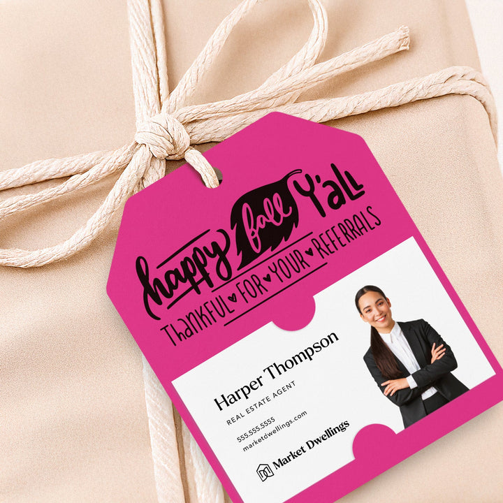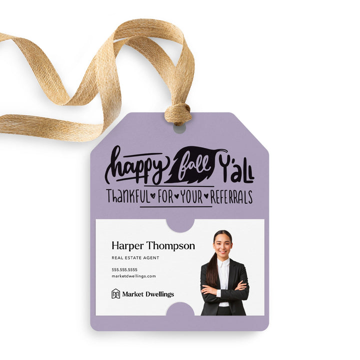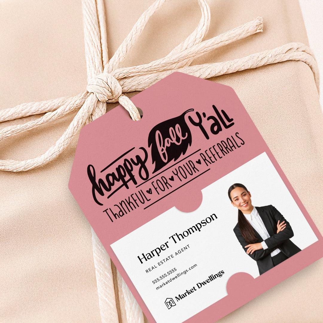 Looking for a thoughtful and professional way to grow your real estate business and nurture client relationships this fall? Look no further than our Happy Fall Y'all Pop By Gift Tags! These charming tags are the perfect way to show your clients that you care while also promoting your business. With slots to hold your business card, these gift tags are a convenient and memorable way to stay top-of-mind with potential clients. Spread some autumn cheer and watch your business blossom this season with our Happy Fall Y'all Pop By Gift Tags.