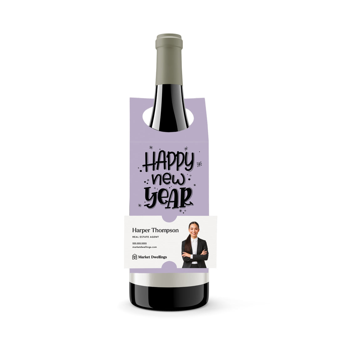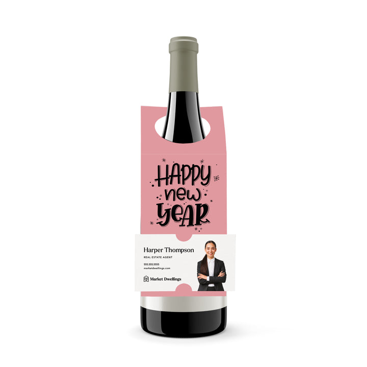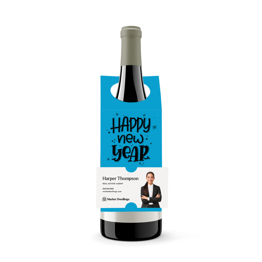 New Year bottle tags, customizable bottle hang tags, festive wine tags, client appreciation tags, professional real estate tags, personalized bottle tags, branded holiday tags, real estate marketing tools, realtor promotional materials, seasonal gift tags, New Year branding tools, thoughtful client gifts, business card bottle tags, celebratory marketing tools, client engagement tools, real estate branding materials.