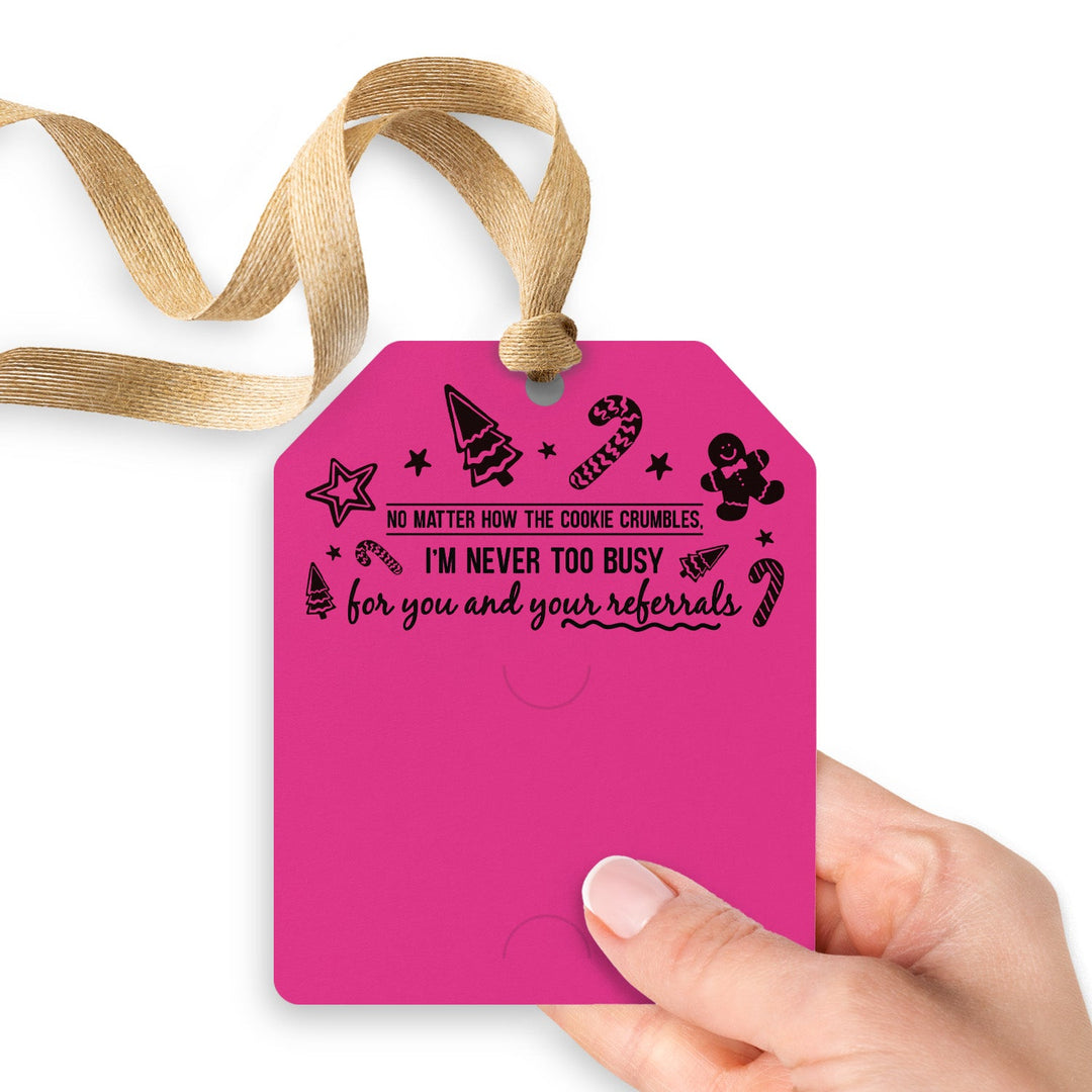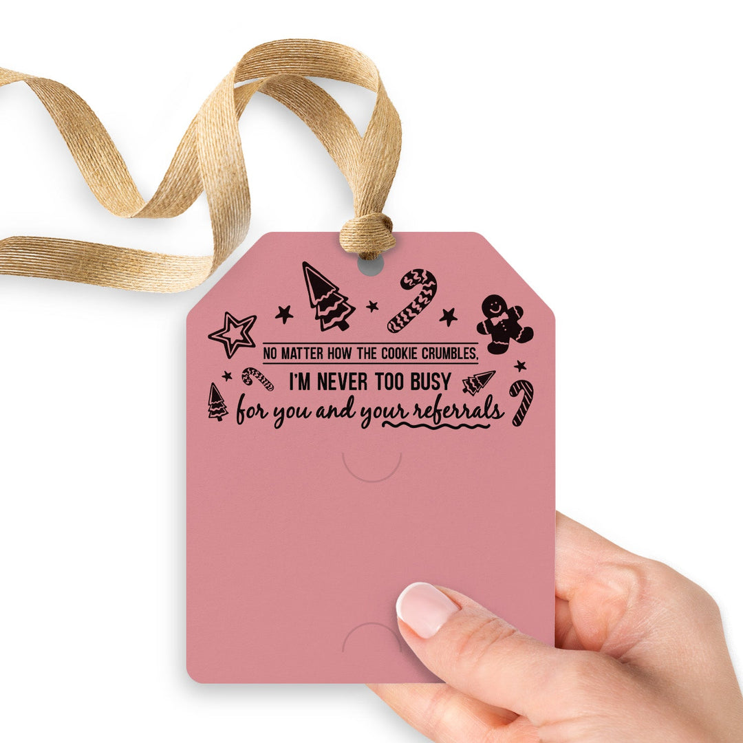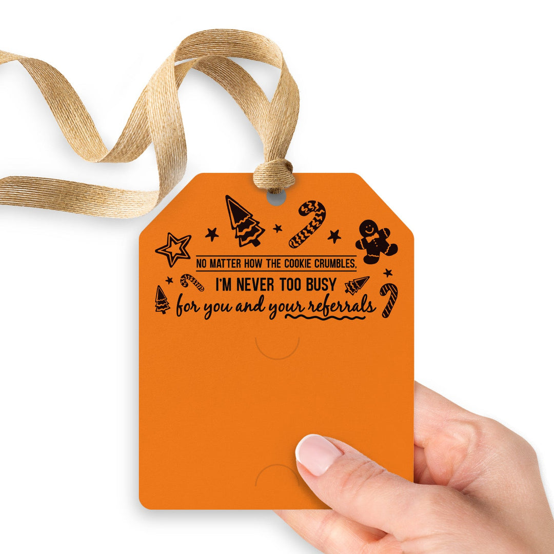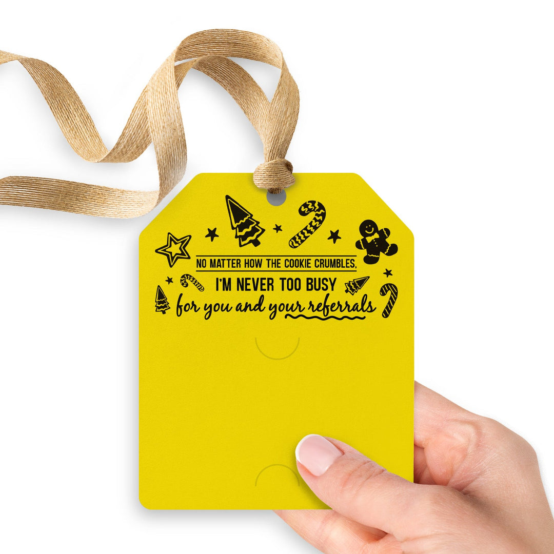 Attention all real estate agents! As the holiday season approaches, it's the perfect time to show your clients how much you appreciate their business and strengthen your professional relationships. Introducing our No Matter How The Cookie Crumbles Christmas Cookie Gift Tags - the perfect way to add a personal touch to your gifts and showcase your branding. These thoughtfully designed gift tags feature slots to hold your business card, making them a powerful marketing tool that will leave a lasting impression on your clients. Show your clients that you value their business and take your marketing efforts to the next level with our festive and professional gift tags.