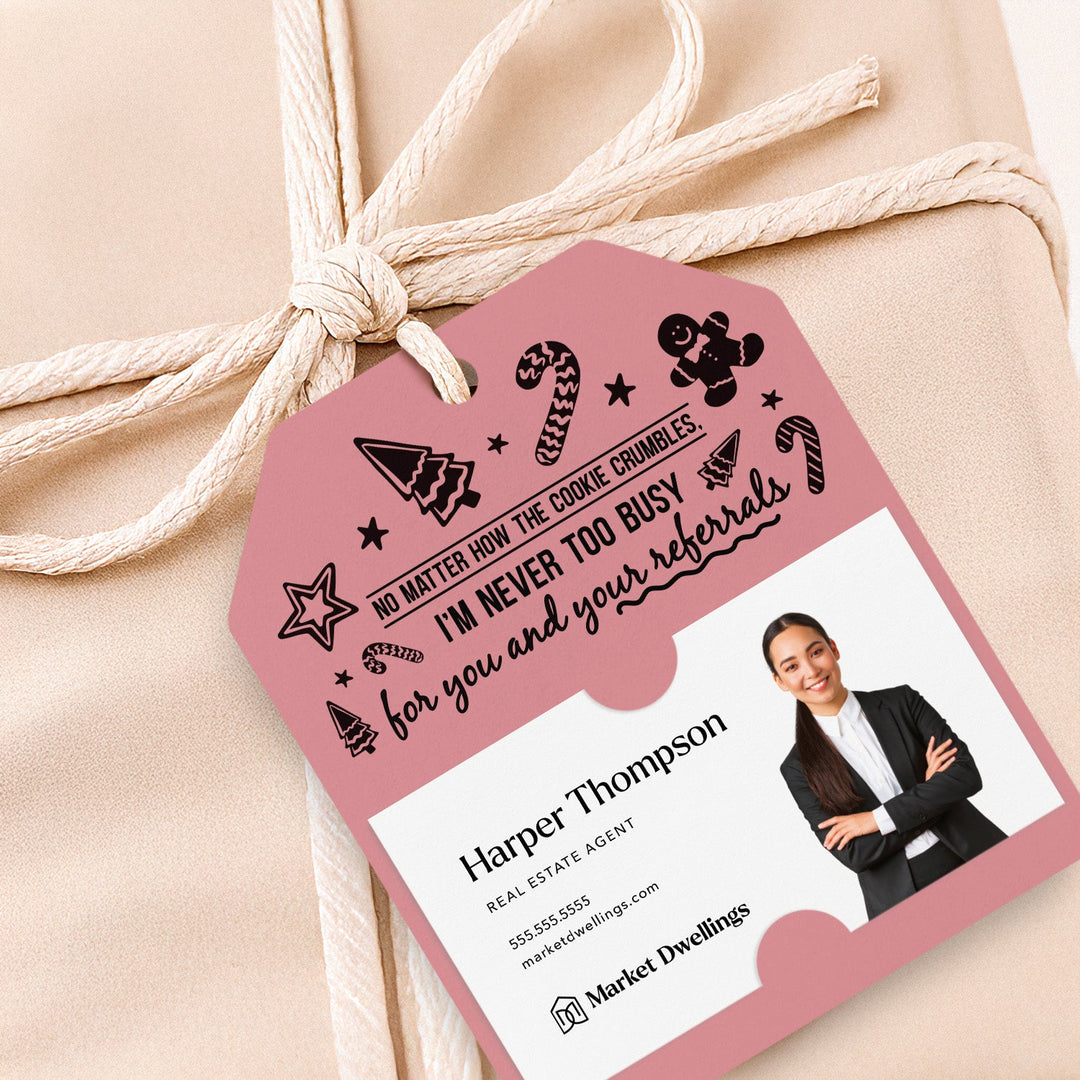 With No Matter How The Cookie Crumbles Christmas Cookie Gift Tags, real estate agents can easily show their gratitude and maintain strong relationships with clients. These pop by gift tags are a unique and memorable way to stand out and increase brand visibility, making them a valuable asset for any real estate agent looking to build trust and strengthen their business.