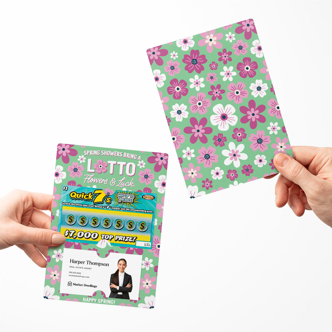 Welcome the season of blooms with our Spring Showers Bring A Lotto Flowers & Luck Mailers w/ Envelopes! These vibrant mailers are the perfect way to connect with your clients and show your appreciation for their referrals. Featuring slots for a scratch-off ticket and your business card, these mailers combine springtime charm with professional branding. Each mailer includes an easy peel-and-stick white envelope for hassle-free mailing.