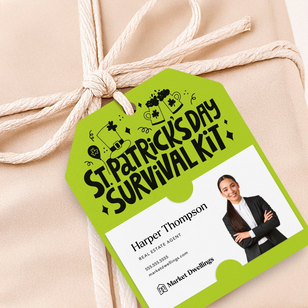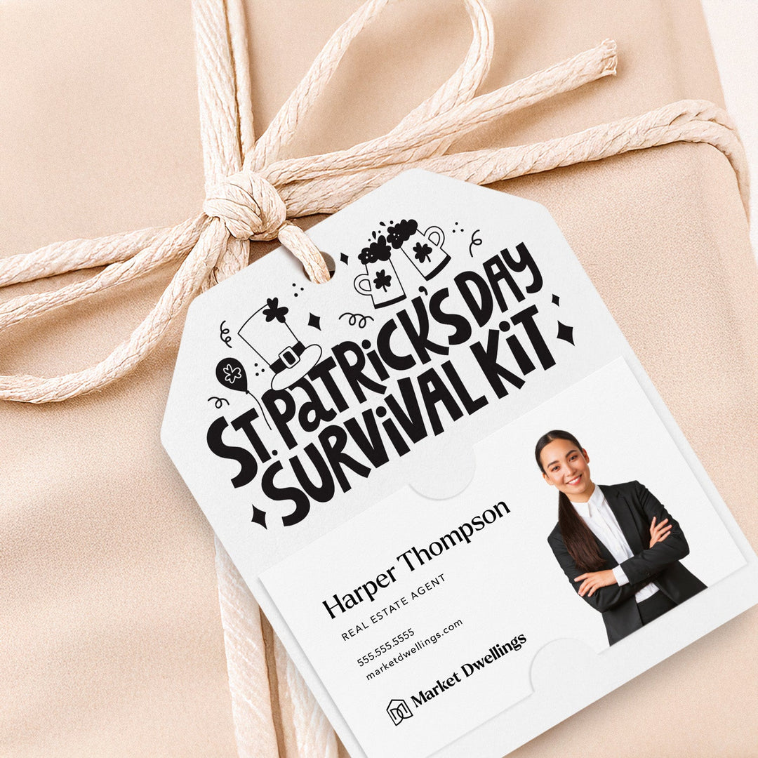 Looking to stand out and make a lasting impression on your clients this St. Patrick's Day? Our St. Patrick's Day Survival Kit and accompanying Pop By Gift Tags are the perfect solution for real estate agents looking to grow their business and nurture client relationships. Show your clients that you value them with these thoughtful and professional marketing materials. Each item has a slot to hold your business card, making it a practical and personal touch to your St. Patrick's Day gifting. Keep reading to discover the value of these must-have items for your real estate business.