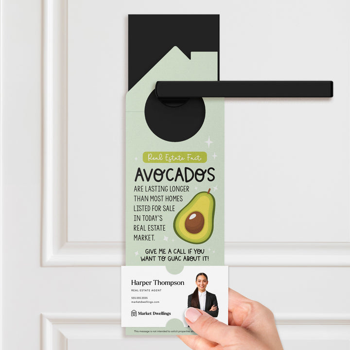With the eye-catching message "Avocados Are Lasting Longer Than Most Homes in Today's Real Estate Market," these door hangers are sure to catch the attention of potential clients and showcase your knowledge of the current real estate market. By highlighting this relevant and timely information, you can establish yourself as a trusted and knowledgeable agent. Plus, with their customizable features, you can add your personal touch and branding to further strengthen your client relationships. These door hangers are a smart and effective way to thank clients and build your business.