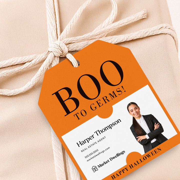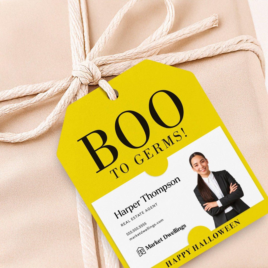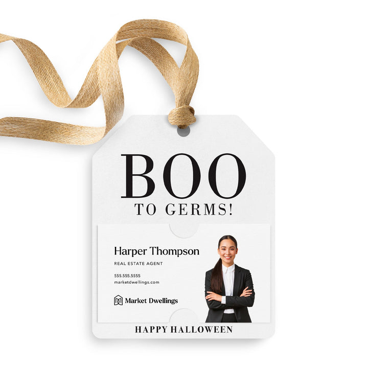 As a real estate agent, your success lies in building strong relationships with your clients. That's why we've created the perfect marketing tool for you - BOO To Germs! Halloween Soap or Sanitizer Pop By Gift Tags. These tags not only add a festive touch to your gifts, but also showcase your professionalism and thoughtfulness. With slots to hold your business card, you can easily leave a lasting impression while promoting your business. Let these gift tags be a fun and effective way to grow your business and nurture your client relationships. Get ready to BOO away germs and boost your marketing game with these must-have gift tags.