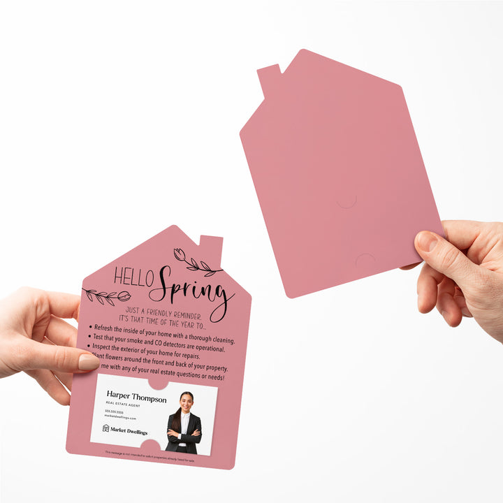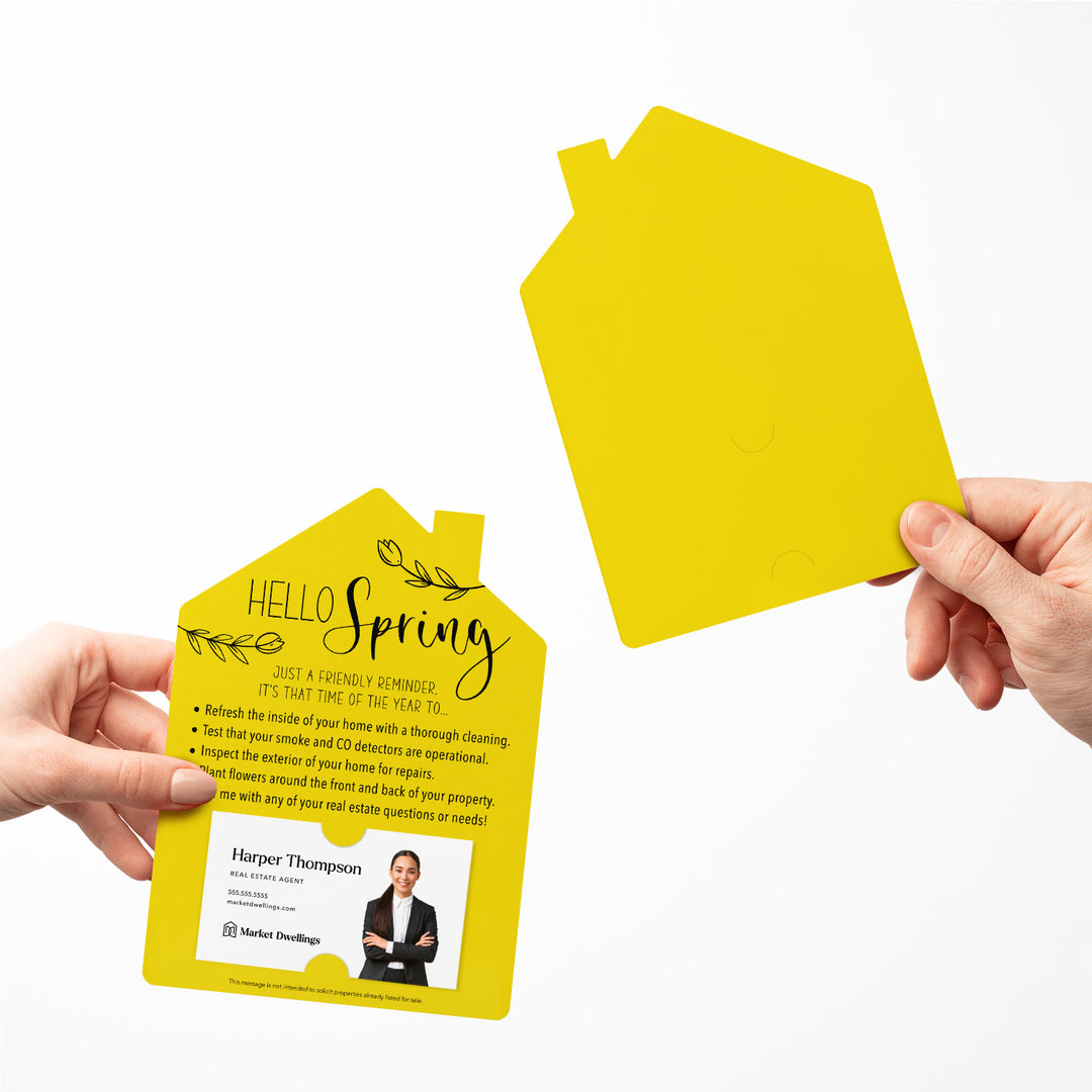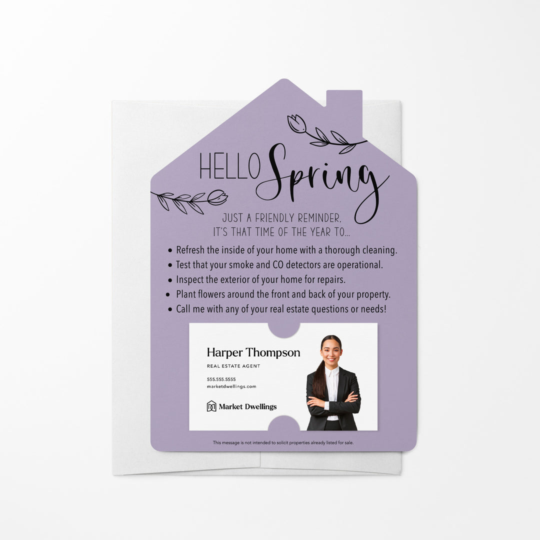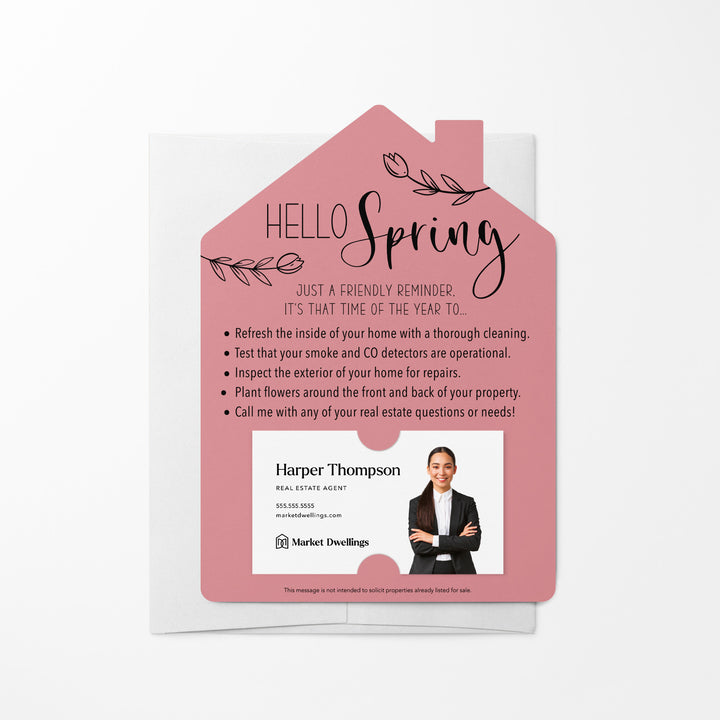 Set of "Hello Spring" Checklist Real Estate Mailer | Real Estate Agent Marketing | Spring Pop By | Insert Business Card | Mailable | S1-M001