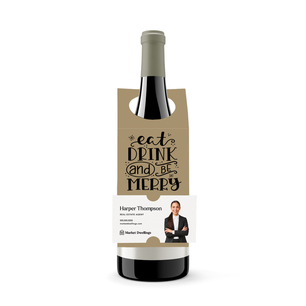 Add a festive touch to your holiday gifts with our Eat, Drink, and Be Merry Bottle Hang Tags! These elegant and cheerful tags are perfect for bottles of wine, spirits, or seasonal beverages, helping you spread holiday cheer while showcasing your professionalism. Featuring a warm holiday design and a slot for your business card, these tags combine thoughtful gifting with memorable branding.
