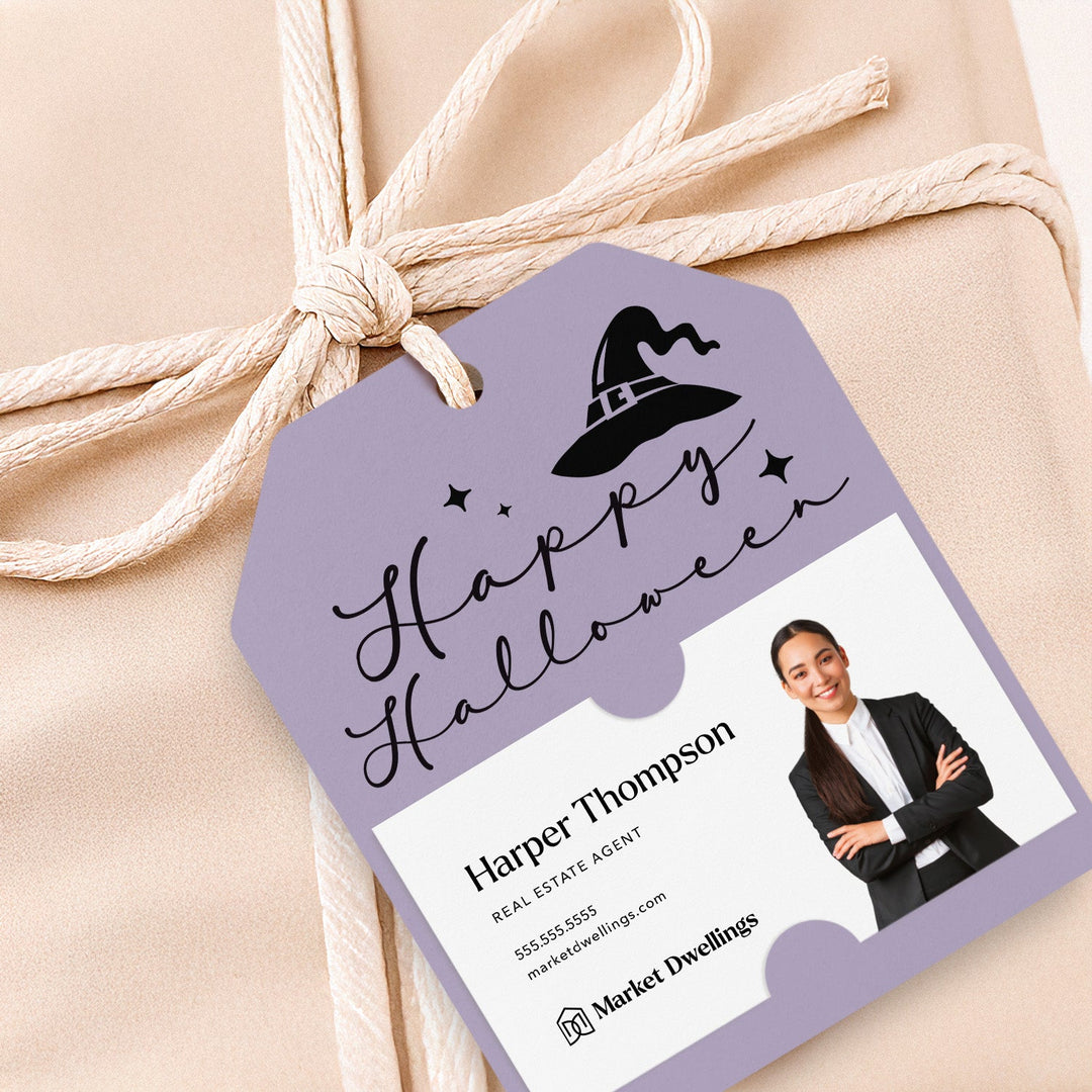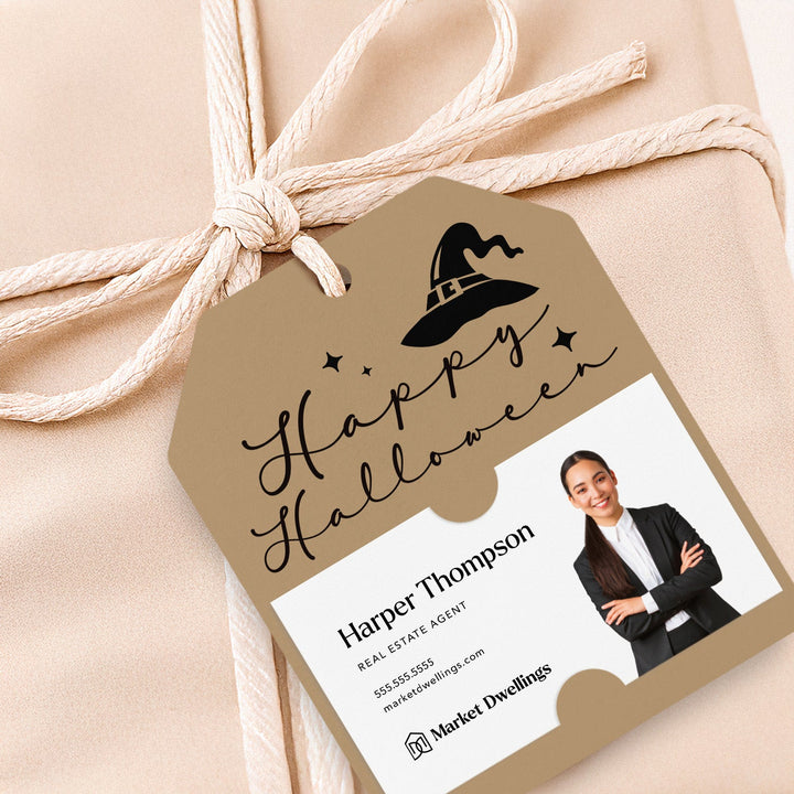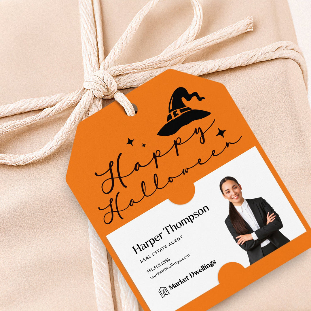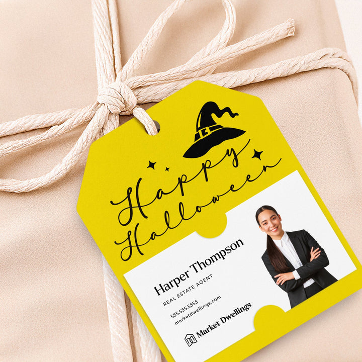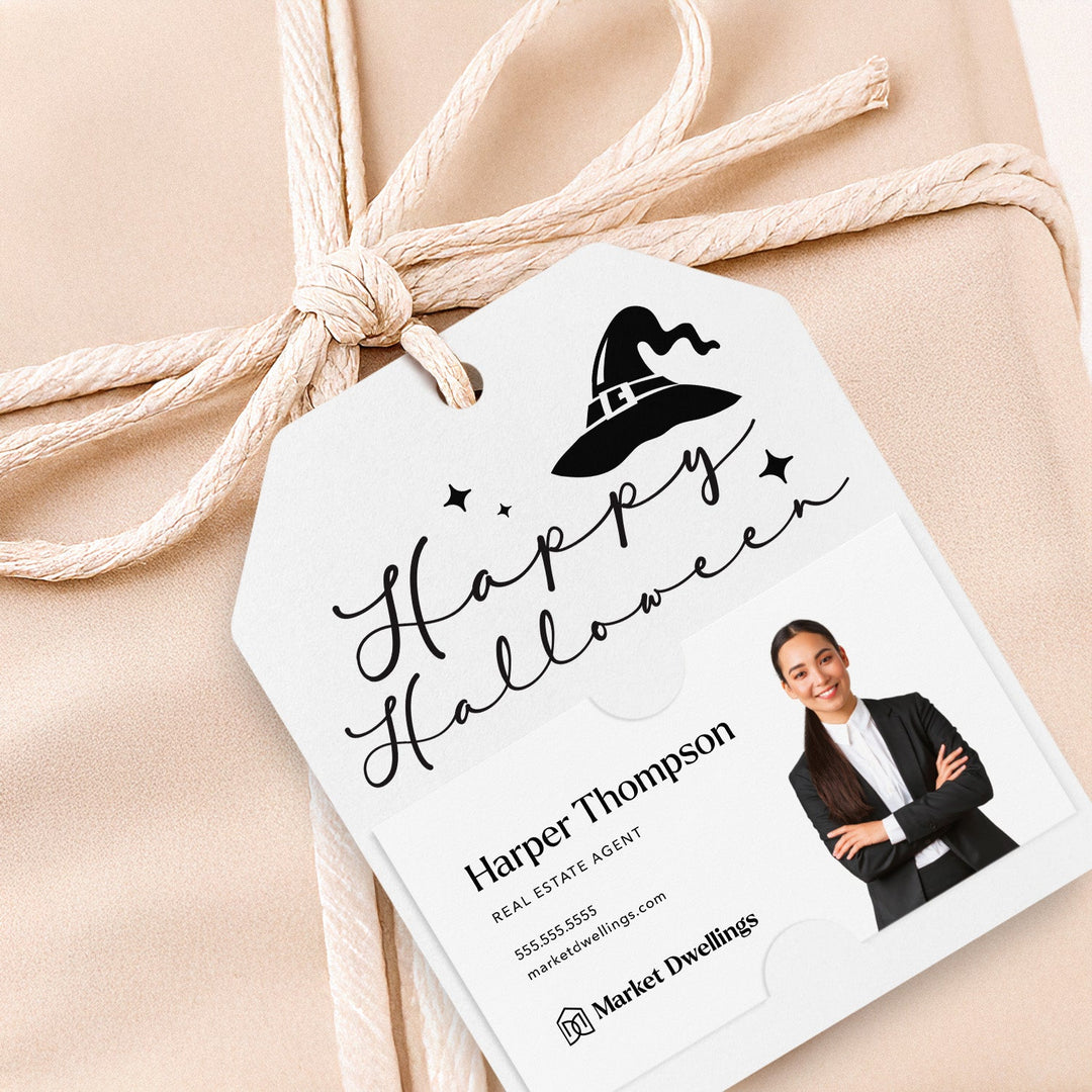 Are you a real estate agent looking to stand out from the competition and make a lasting impression on your clients this Halloween? Look no further than our Happy Halloween Witches Hat Pop By Gift Tags! These unique and charming gift tags are perfect for adding a personalized touch to your client gifts or marketing materials. Each tag features a slot to hold your business card, making it easy to stay connected with clients and potential leads. Show your clients that you care about their business and build strong relationships with our Happy Halloween Witches Hat Pop By Gift Tags. Order now and make this Halloween a memorable one for your business!