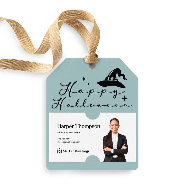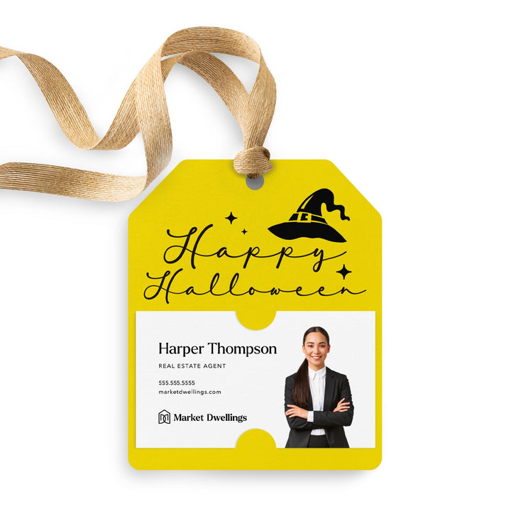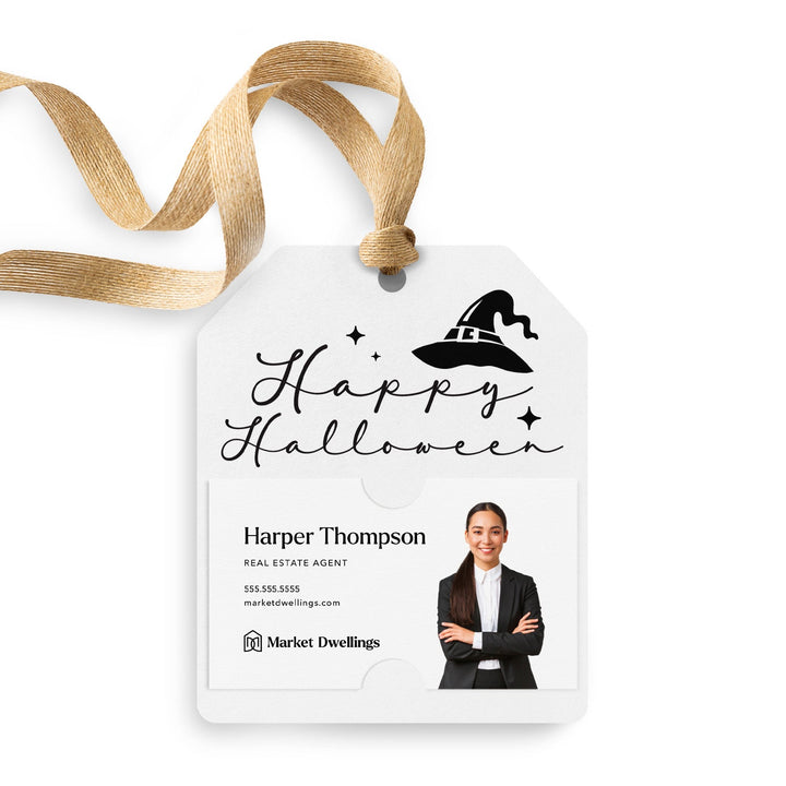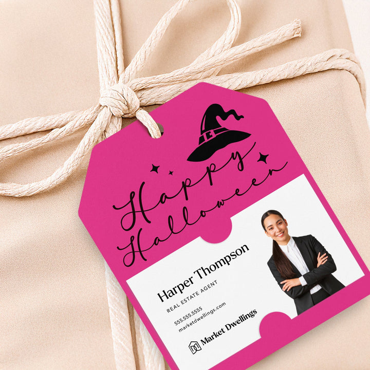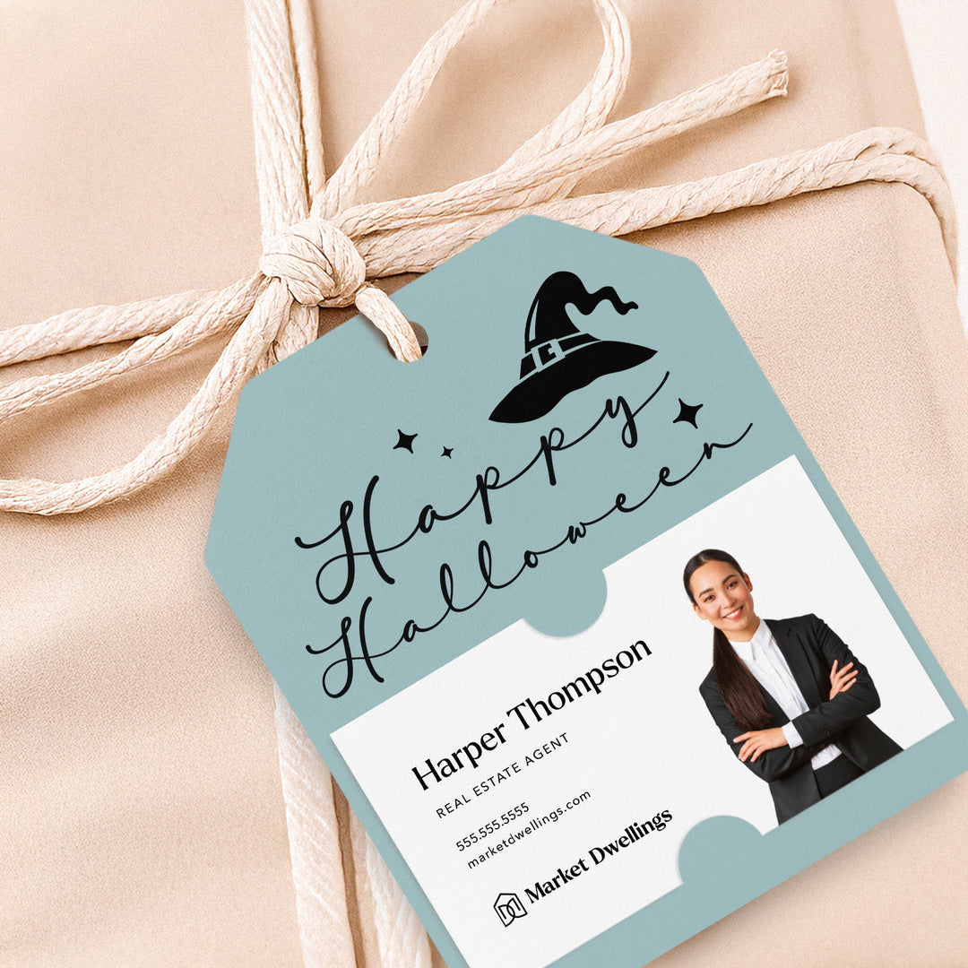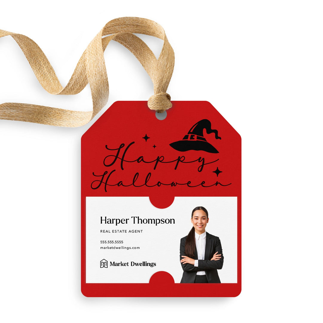 Are you a real estate agent looking to stand out from the competition and make a lasting impression on your clients this Halloween? Look no further than our Happy Halloween Witches Hat Pop By Gift Tags! These unique and charming gift tags are perfect for adding a personalized touch to your client gifts or marketing materials. Each tag features a slot to hold your business card, making it easy to stay connected with clients and potential leads. Show your clients that you care about their business and build strong relationships with our Happy Halloween Witches Hat Pop By Gift Tags. Order now and make this Halloween a memorable one for your business!