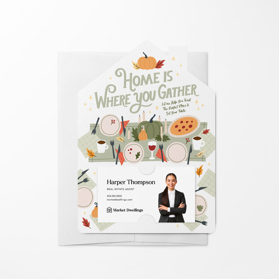 Set of Home Is Where You Gather Real Estate Mailers with Envelopes | Real Estate Fall Pop By | Thanksgiving Mailers | Fall | M66-M001