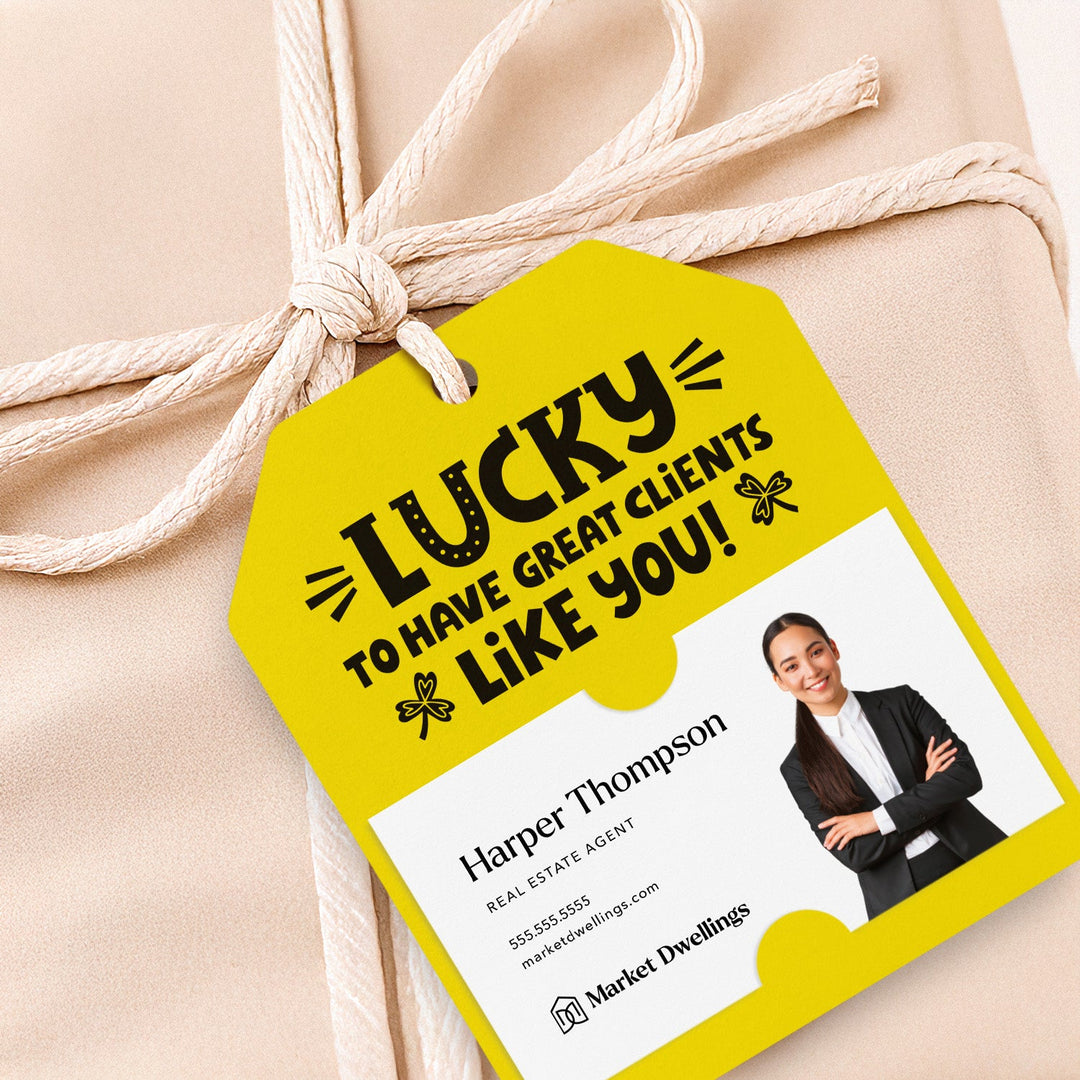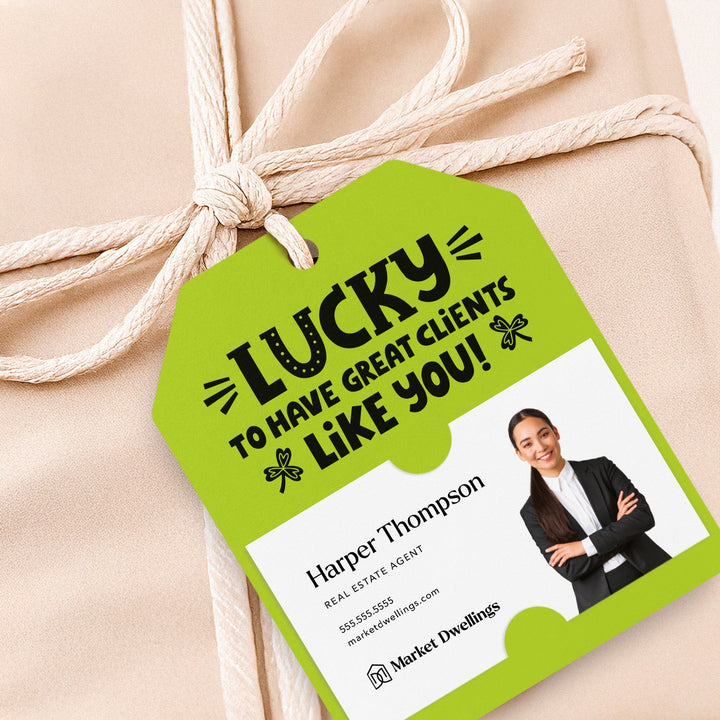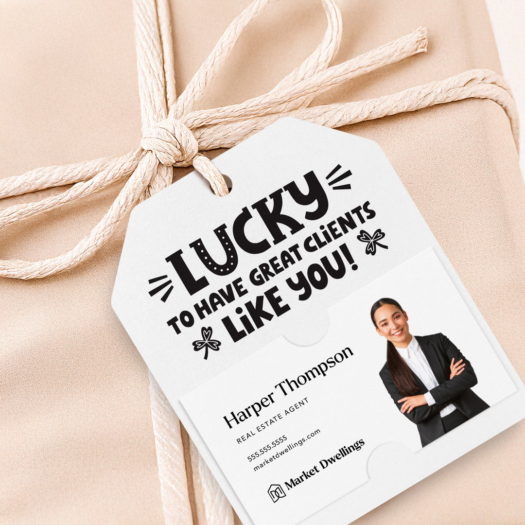 As a real estate professional, growing your business and nurturing client relationships are top priorities. That's why we've created the Lucky To Have Great Clients Like You Pop By Gift Tags, just in time for St. Patrick's Day! These charming and professional gift tags are the perfect way to show your appreciation for your clients, while also promoting your business. With a slot to hold your business card, these tags make it easy to leave a lasting impression and stay top of mind. Make this St. Patrick's Day a lucky one for your business with our thoughtful and relationship-building marketing materials.