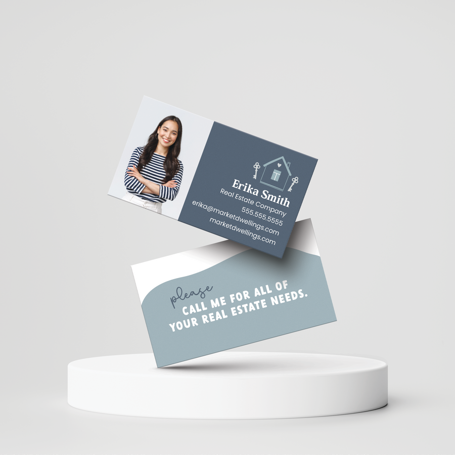 Make an impression with our affordable, custom business cards. Professionally printed on quality matte paper, our cards let you showcase your brand at a great value. Fully customizable to match your style. An essential marketing tool for any real estate agent, whether you're just starting out or looking to refresh your image. These fit perfectly in our other marketing materials with business card slots. Design your new real estate business cards today!
