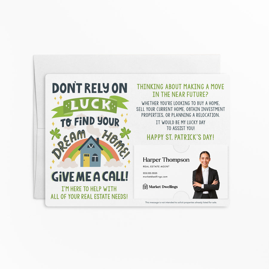 SET of Don't Rely on Luck to Find Your Dream Home Mailers w/ Envelopes | St. Patrick's Day Real Estate Agent Mailer | Pop By | SP7-M003