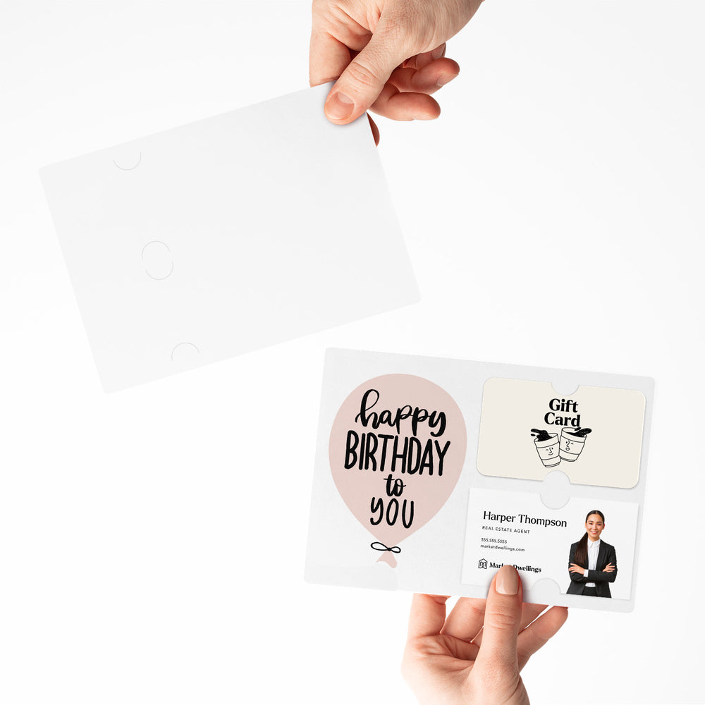 Wish your clients a Happy Birthday with this unique greeting card that holds a gift card and your business card. Real estate agents, Mortgage loan officers, Insurance agents, and more... send these awesome mailers to clients, vendors, associates, etc. Insert a gift card and business card in the slots provided.