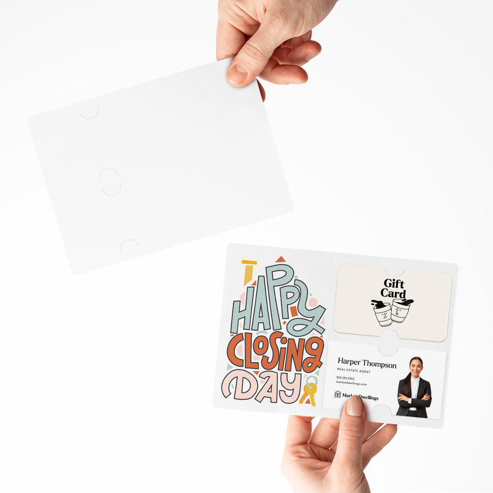 Set of Happy Closing Day Mailer Gift Card & Business Card Holder w/Envelopes | Real Estate Mortgage | Insert Business Card | M30-M008