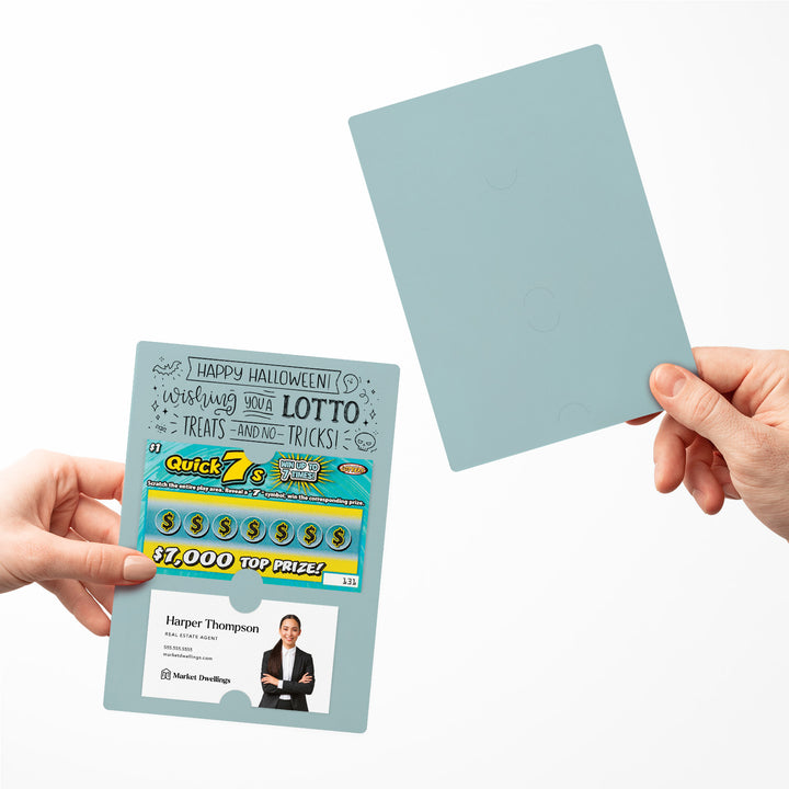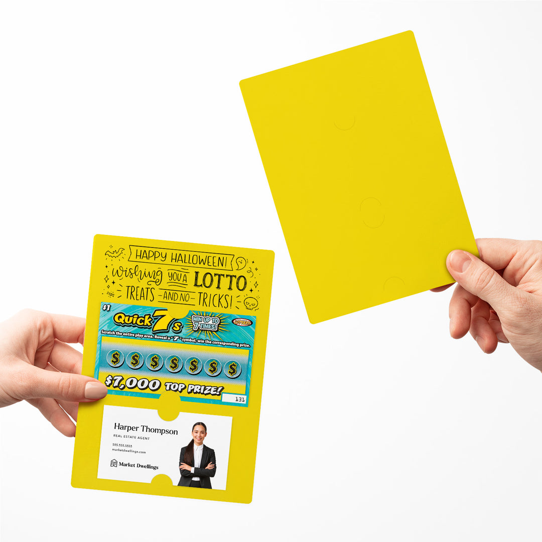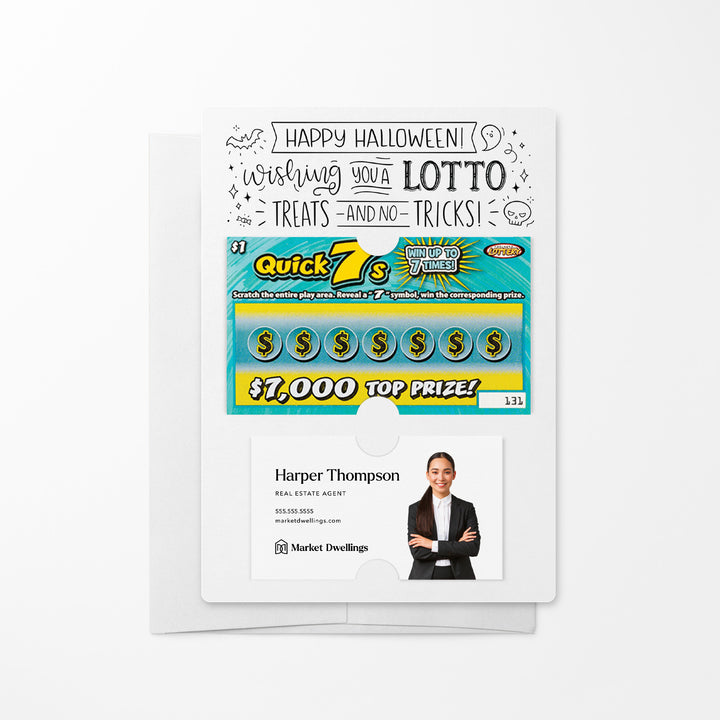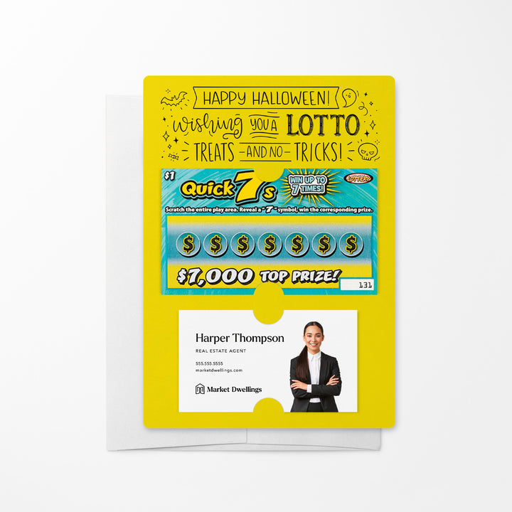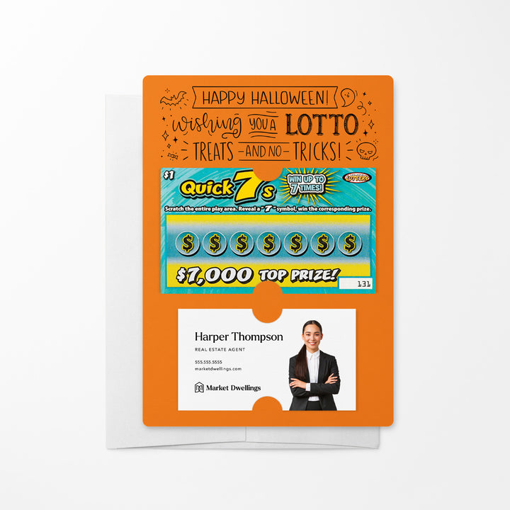 Delight your clients this spooky season with our Happy Halloween Mailers w/ Envelopes! These festive mailers are a creative way to connect with your clients and show your appreciation for their business and referrals. Featuring slots for a scratch-off ticket and your business card, these mailers combine Halloween fun with professional branding. Each mailer includes an easy peel-and-stick white envelope for hassle-free mailing.