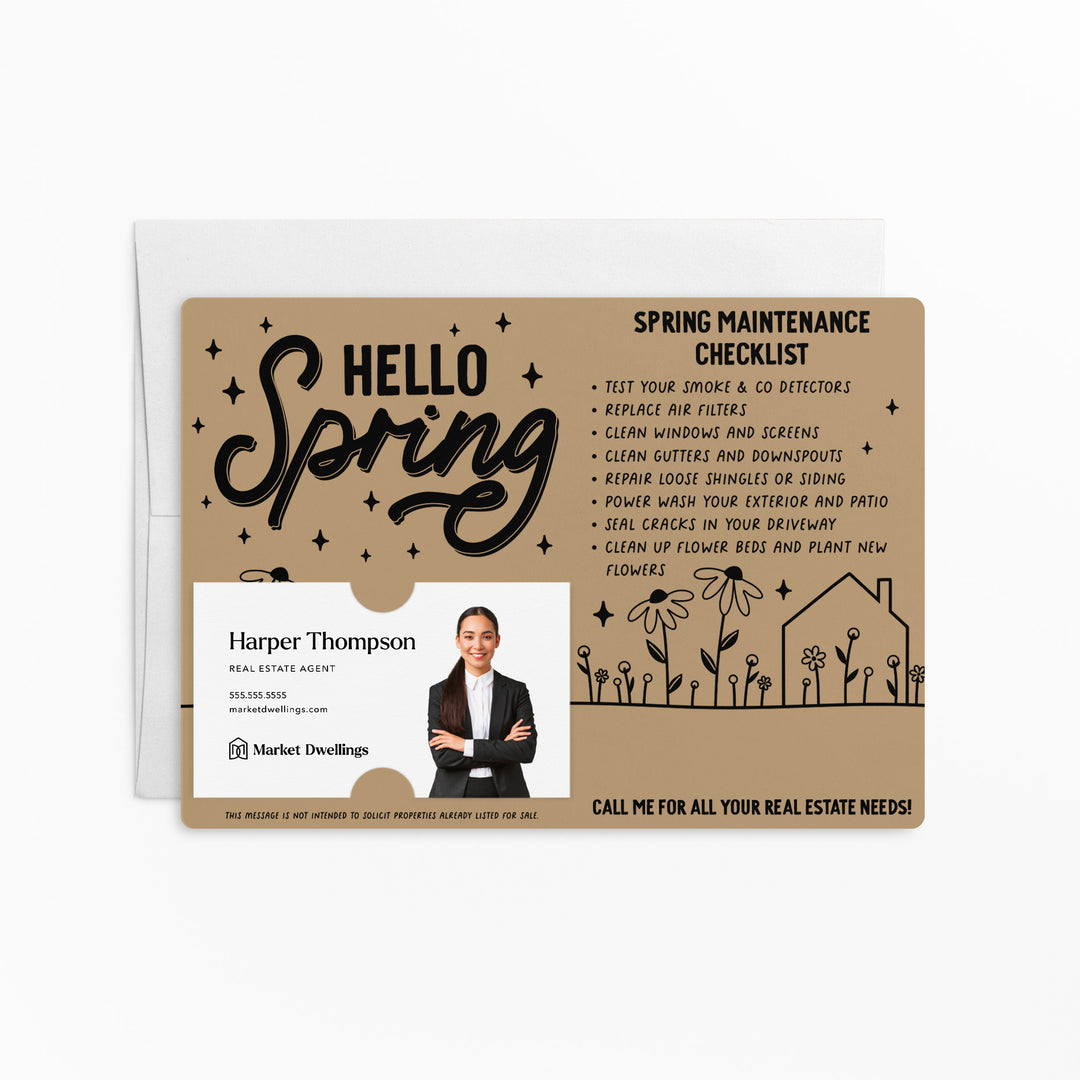 Set of Hello Spring Maintenance Checklist Mailers | Spring Real Estate | Envelopes Included | M30-M004