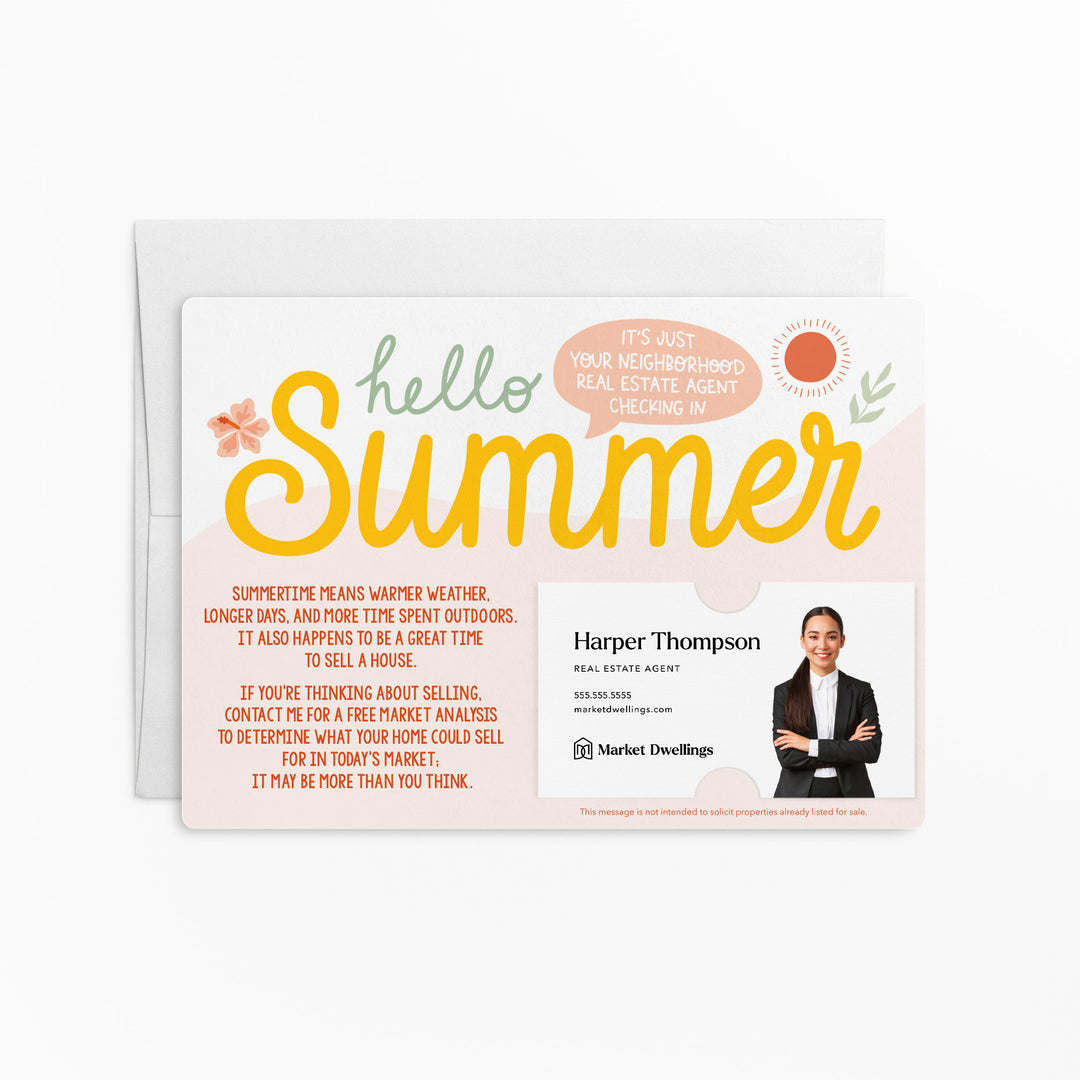 Set of "Hello Summer" Real Estate Neighbor Double Sided Mailers w/Envelopes | Real Estate Summer | Client | M56-M003