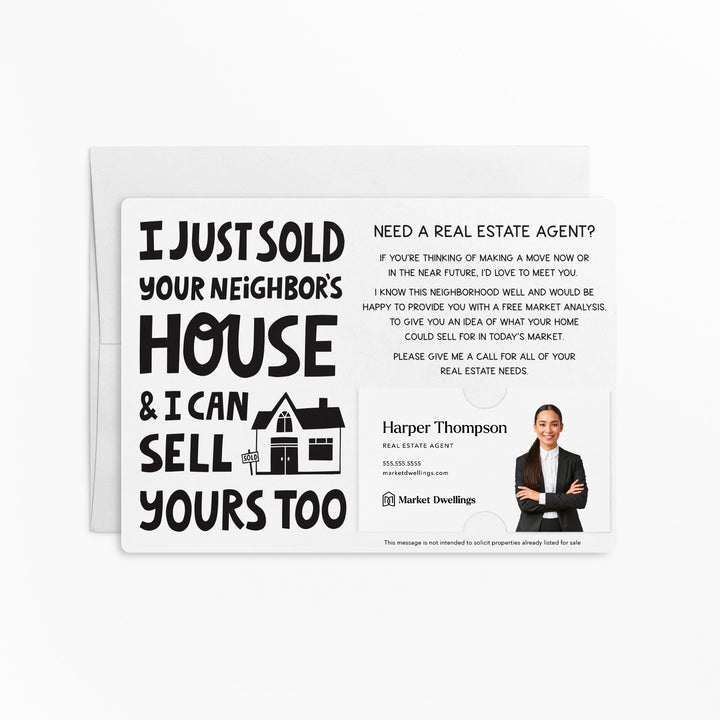 SET of I Just Sold Your Neighbor's House Mailer w/Envelopes | Real Estate Agent Marketing | Insert your business card | M80-M003