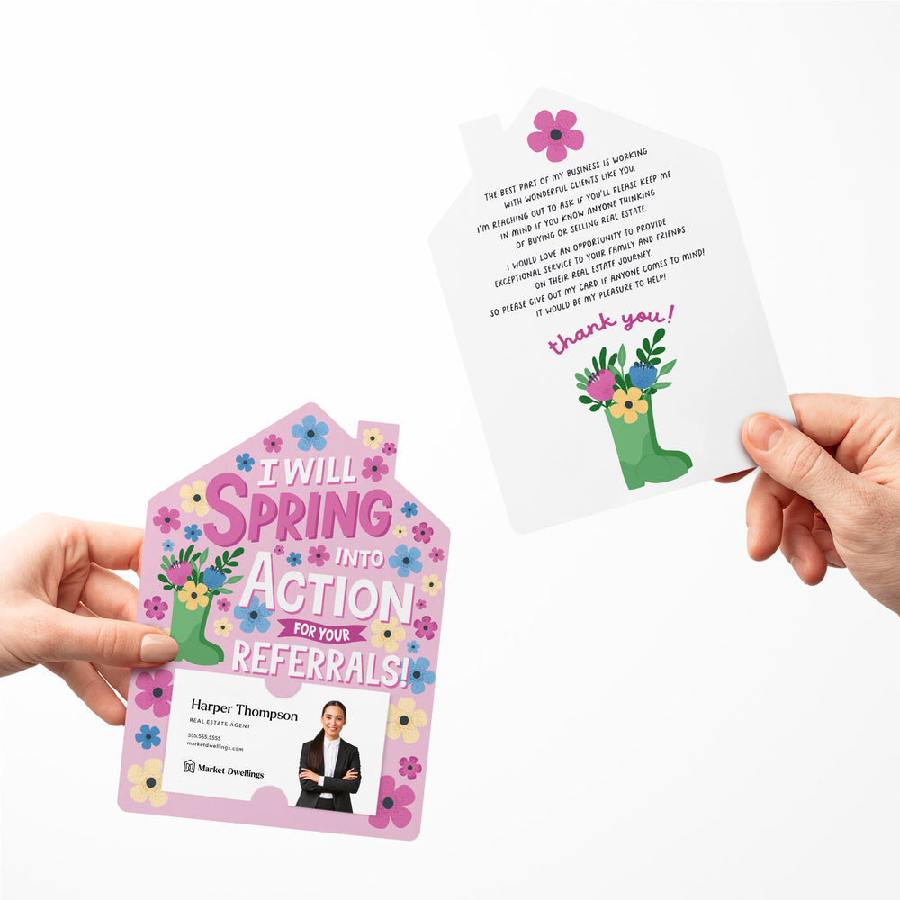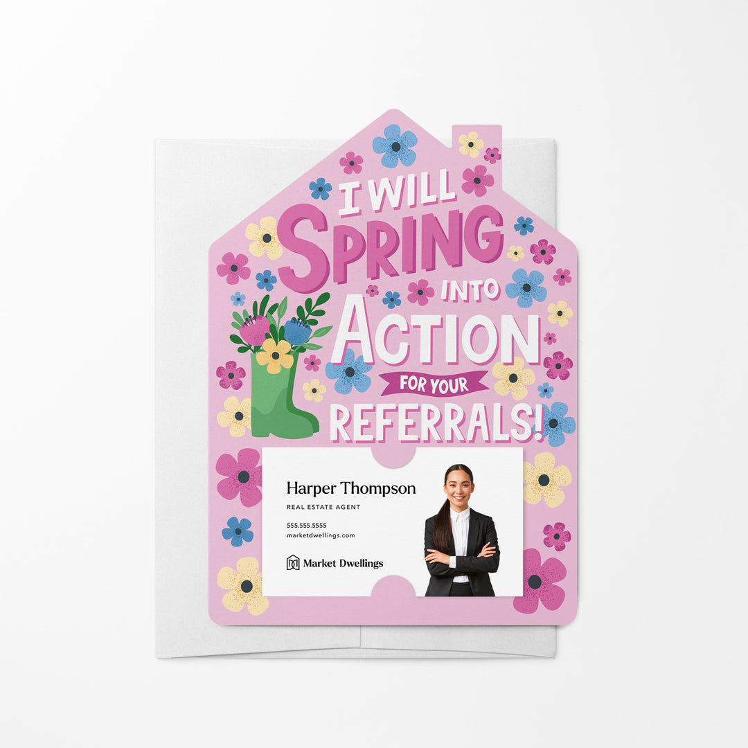 Set of I Will Spring Into Action For Your Referrals! Mailers | Spring Real Estate | Envelopes Included | M123-M001