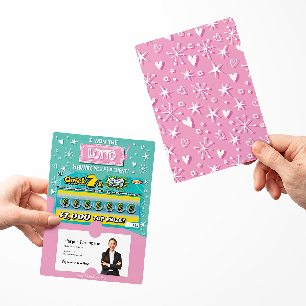 Valentine's Day mailers, customizable scratch-off mailers, client appreciation mailers, real estate marketing tools, professional Valentine's mailers, personalized lotto mailers, branded scratch-off mailers, real estate lotto mailers, realtor promotional materials, festive client gifts, business card mailers, scratch ticket mailers, creative Valentine's outreach, client engagement tools, real estate branding materials.