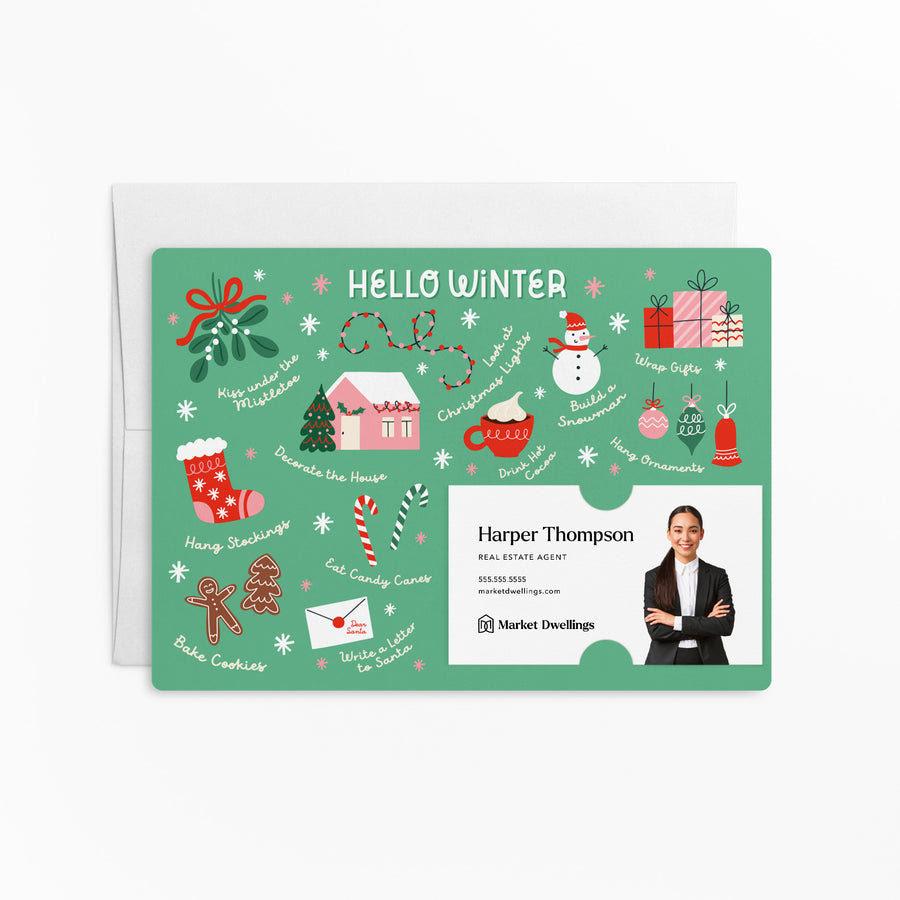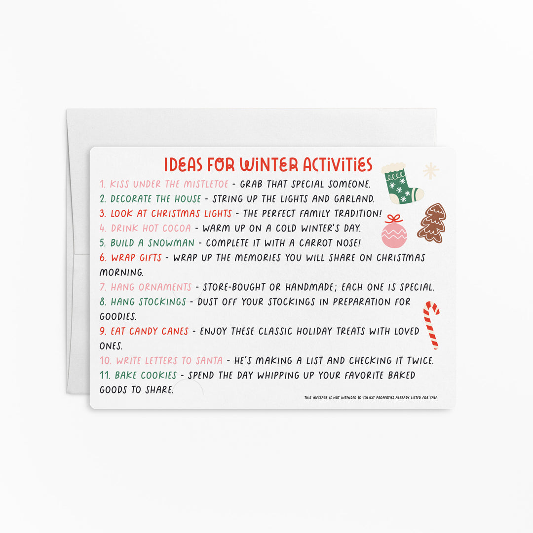 Set of Ideas For Winter Activities Mailers | Winter Christmas Real Estate | Envelopes Included | M109-M003