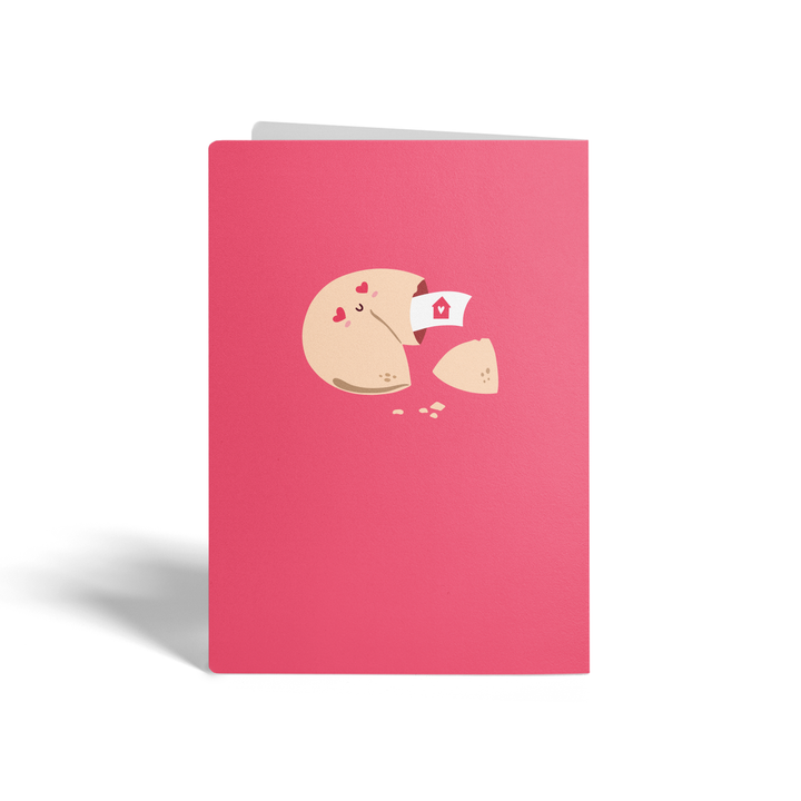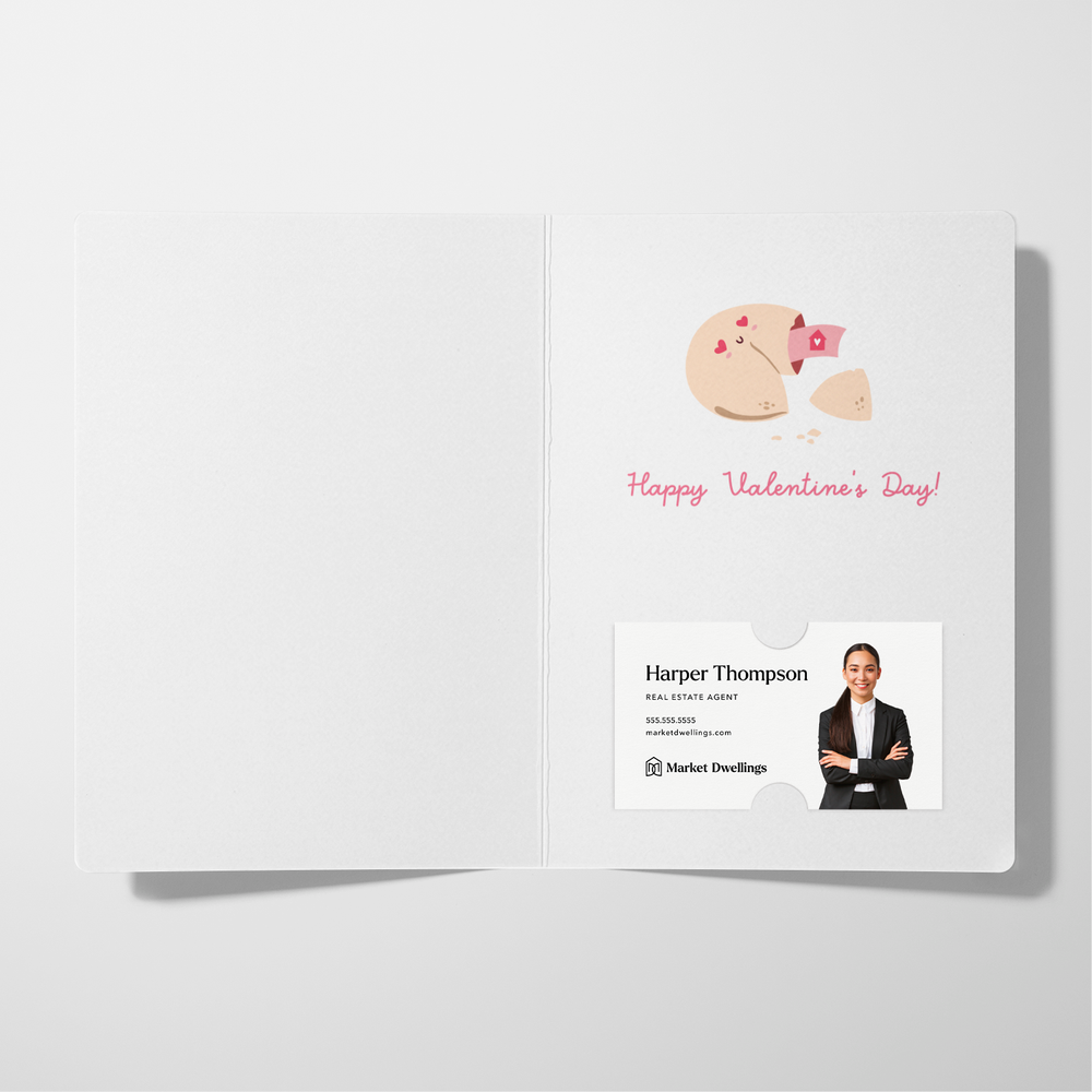 valentine's day greeting cards for realtors, fortune cookie-themed client appreciation cards, customizable real estate marketing tools, playful business cards with slots, professional valentine's cards for real estate agents, realtor client connection cards, cards with peel-and-stick envelopes