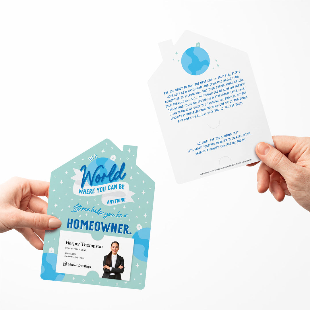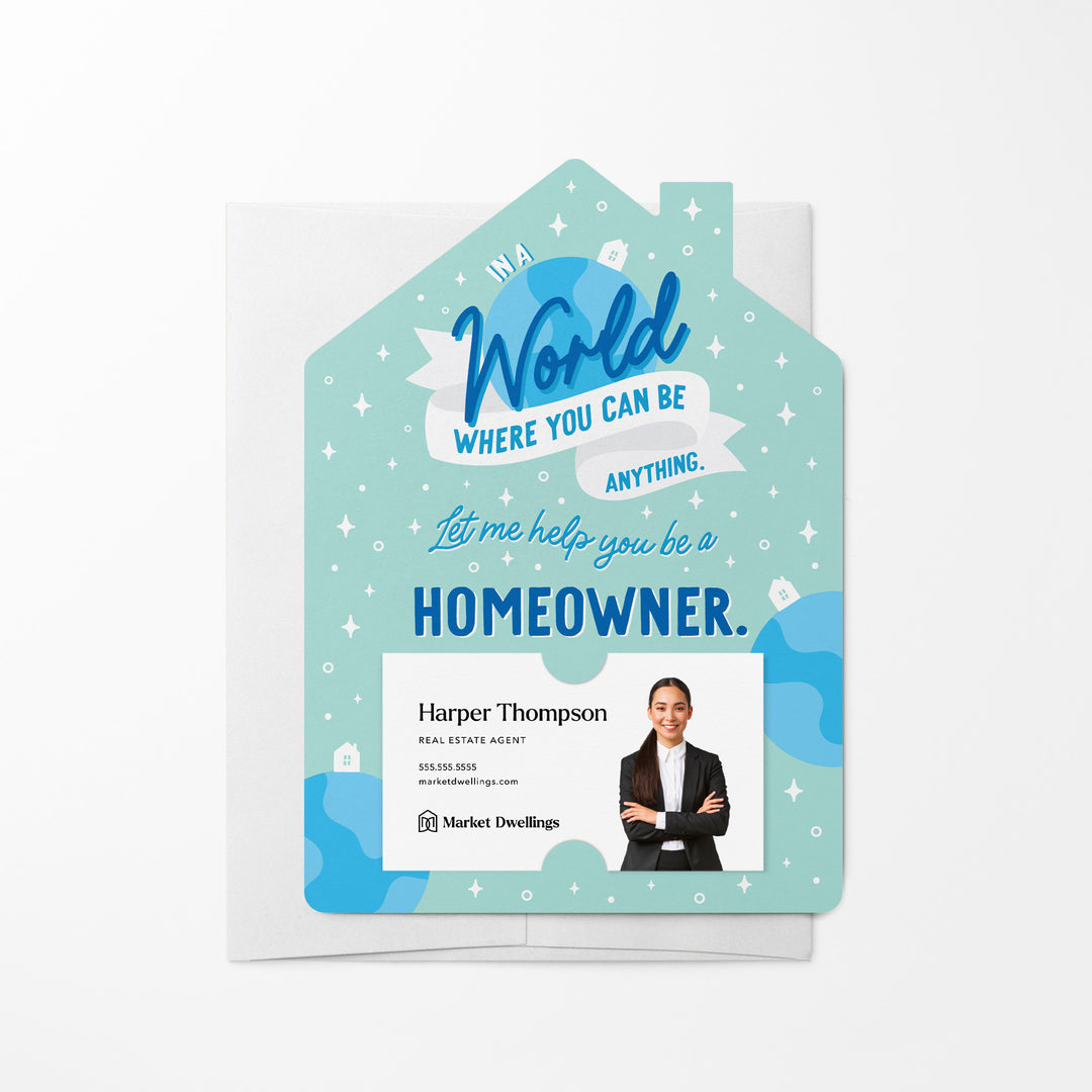 Set of In A World Where You Can Be Anything, Let Me Help You Be A Homeowner. Mailers | Real Estate | Envelopes Included | M150-M001