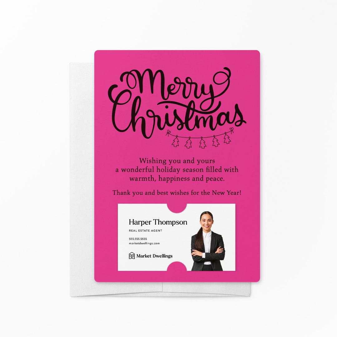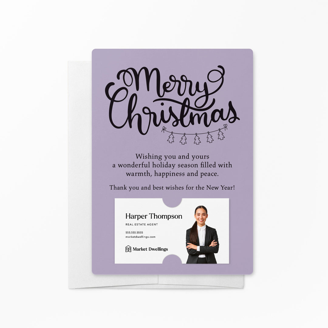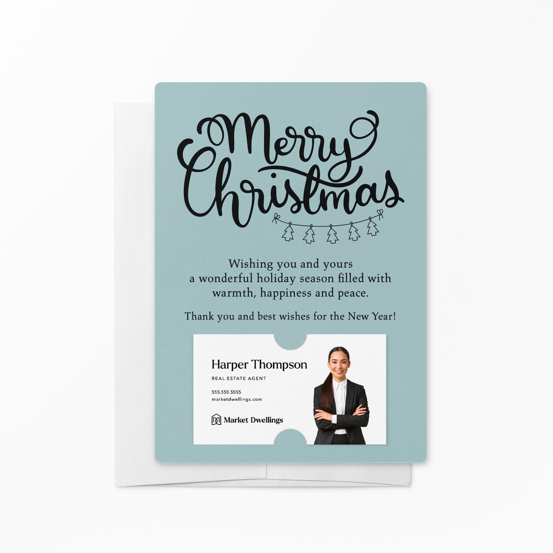 SET of Merry Christmas with String of Trees Mailer | Real Estate / Mortgage / Insurance Client Card | Christmas Card | M33-M007