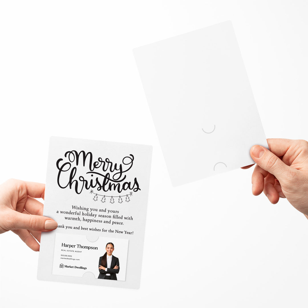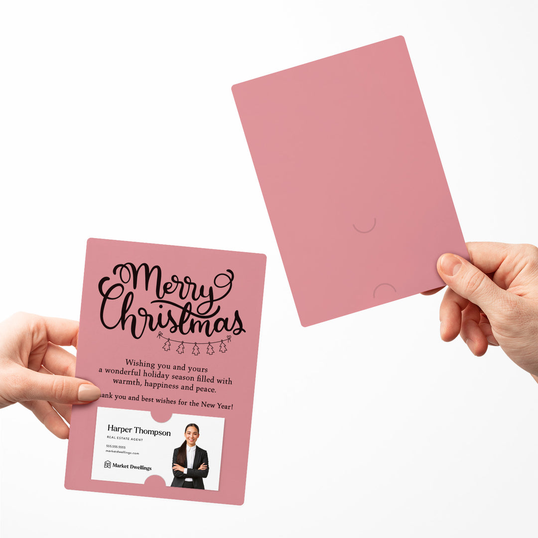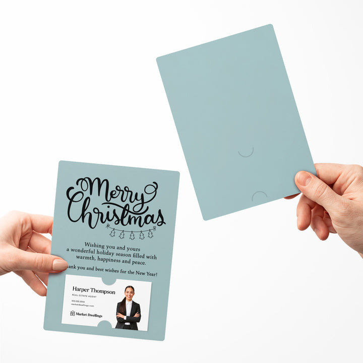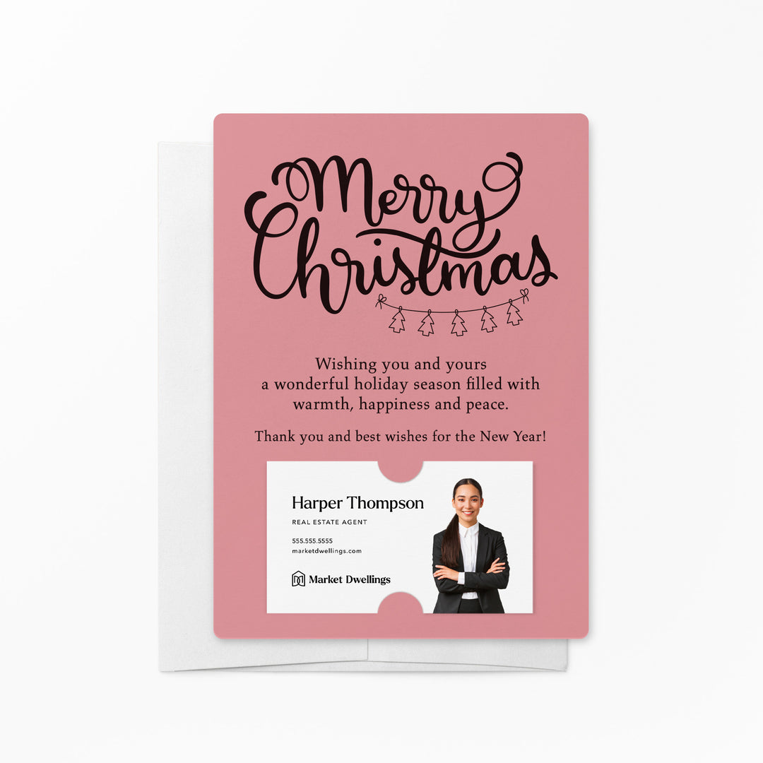 SET of Merry Christmas with String of Trees Mailer | Real Estate / Mortgage / Insurance Client Card | Christmas Card | M33-M007