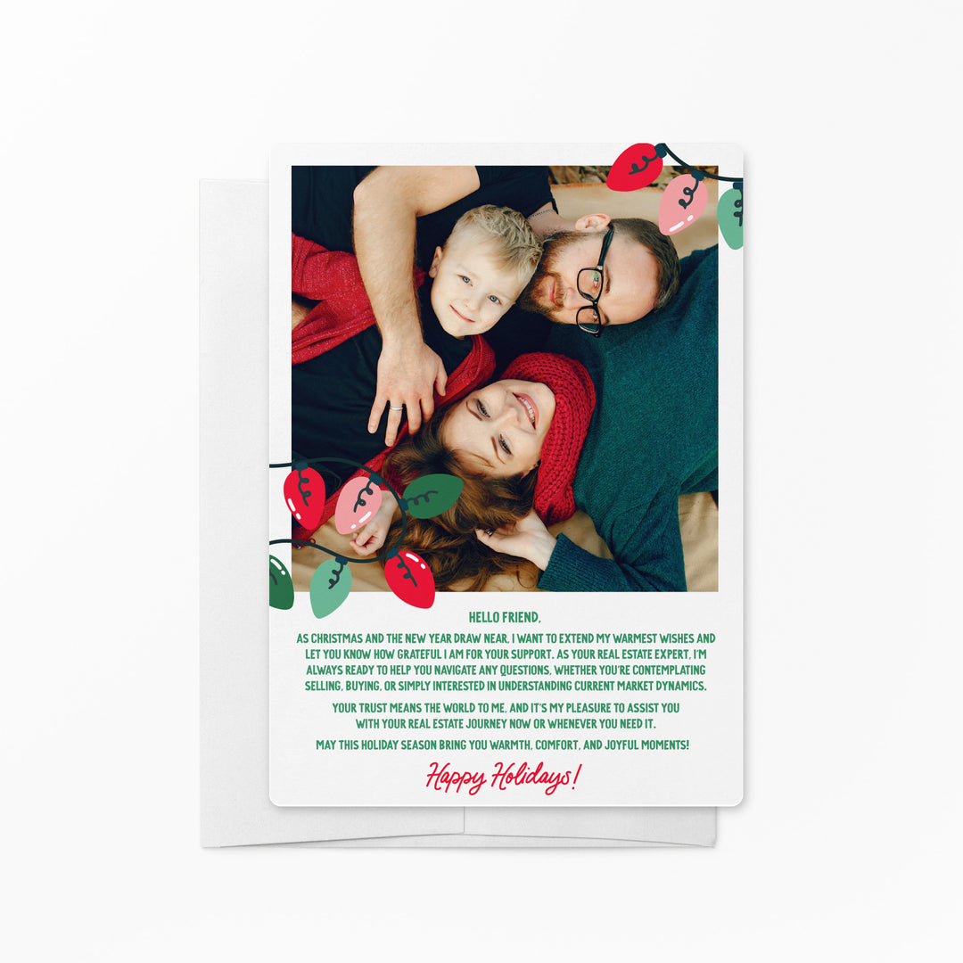 Infuse the holiday magic throughout your target market with these real estate mailers! Alongside your heartfelt seasonal greetings, a dedicated space for your family photo adds a personal touch that truly resonates. Capture the enchantment of the season while forging meaningful connections. White envelopes included.