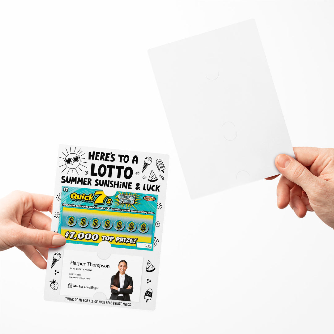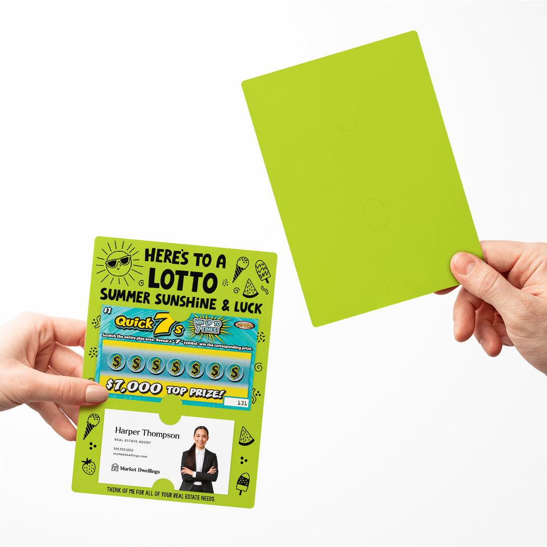 summer mailers, customizable scratch-off mailers, client appreciation mailers, real estate marketing tools, professional seasonal mailers, personalized lotto mailers, branded scratch-off mailers, real estate lotto mailers, realtor promotional materials, cheerful client gifts, business card mailers, scratch ticket mailers, creative summer outreach, client engagement tools, real estate branding materials.