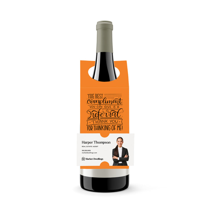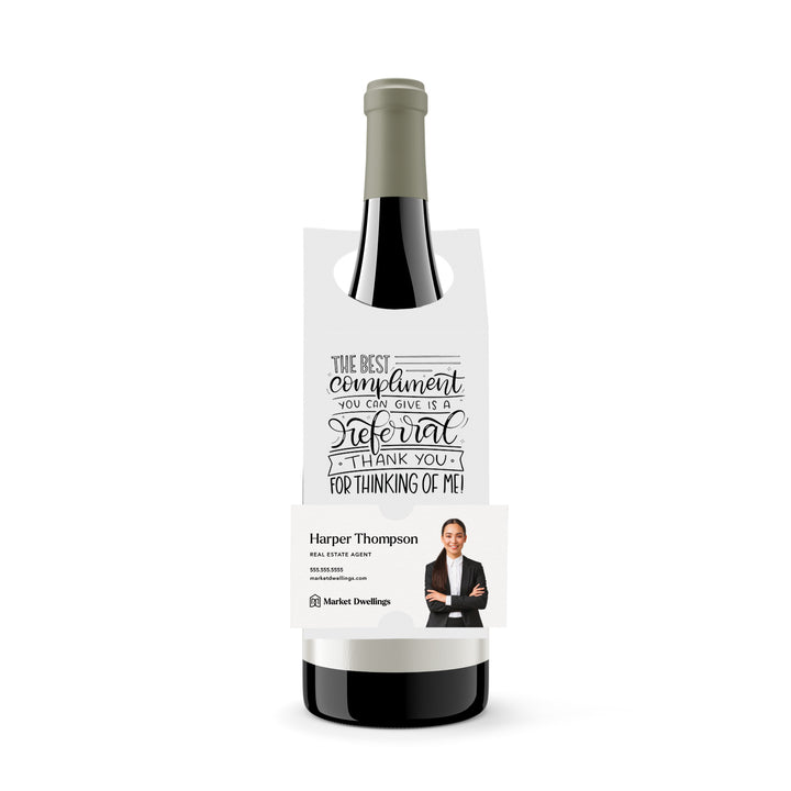 Encourage referrals in a thoughtful way with our The Best Compliment You Can Give is a Referral Bottle Hang Tags! These professional and stylish tags are the perfect addition to bottles of wine, champagne, or celebratory beverages, helping you thank clients and gently remind them of the power of referrals. Featuring an elegant design and a slot for your business card, these tags combine gratitude with smart branding.