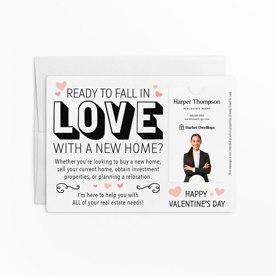 Vertical | SET of Ready to Fall in Love with a New Home Real Estate Mailers with Envelopes | Real Estate Marketing | V1-M005