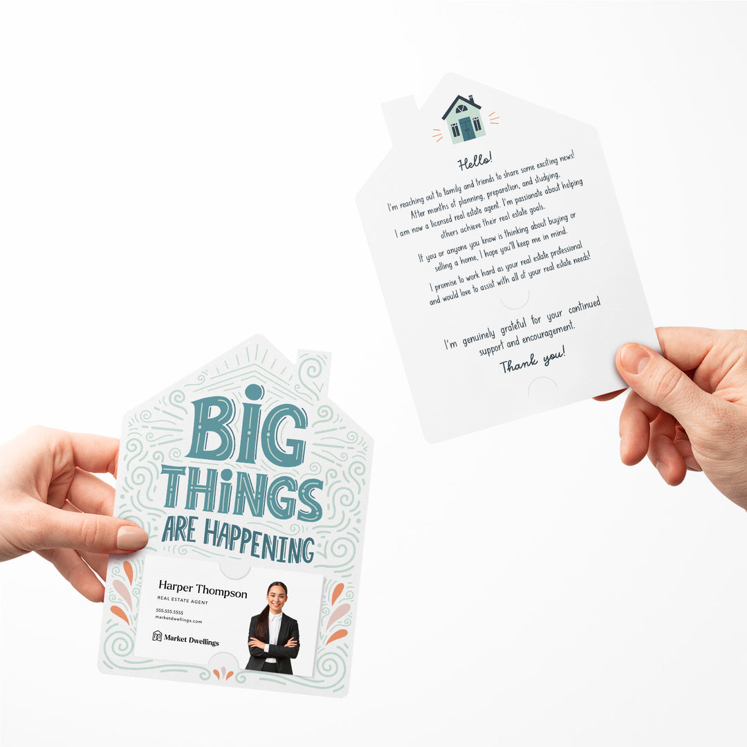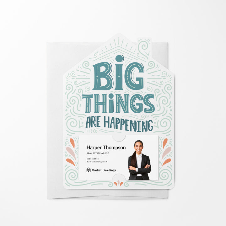 SET of Big Things Are Happening Mailers w/Envelopes | Double-sided New Real Estate Agent Introduction | Real Estate Announcement | M39-M001