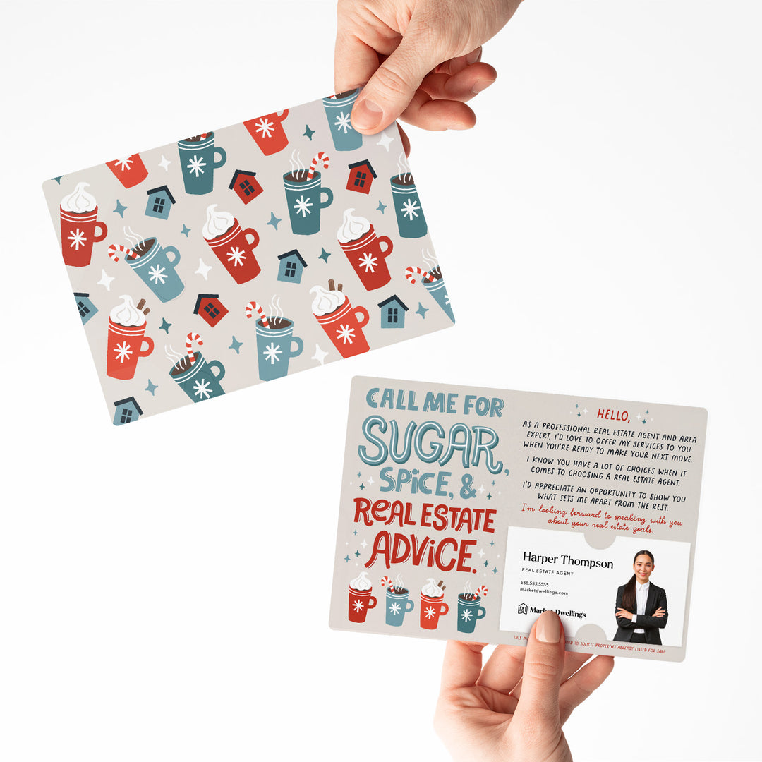 Set of Call Me For Sugar, Spice, & Real Estate Advice. Mailers | Winter Christmas Real Estate | Envelopes Included | M108-M003