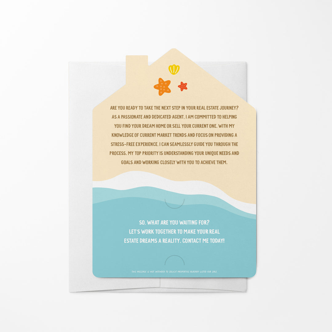 Send these summer mailers to homes in your target market. You can even slide your business card in the slots provided, so the homeowner can call you when they need a real estate agent! White envelopes included.