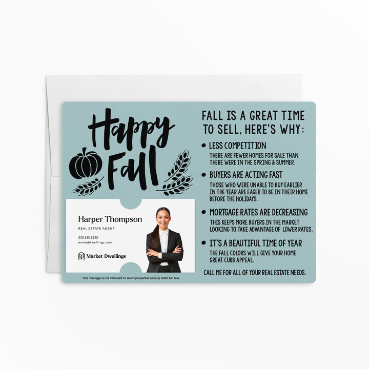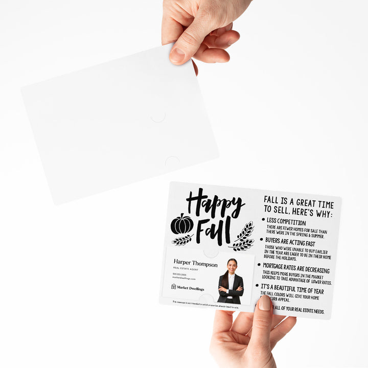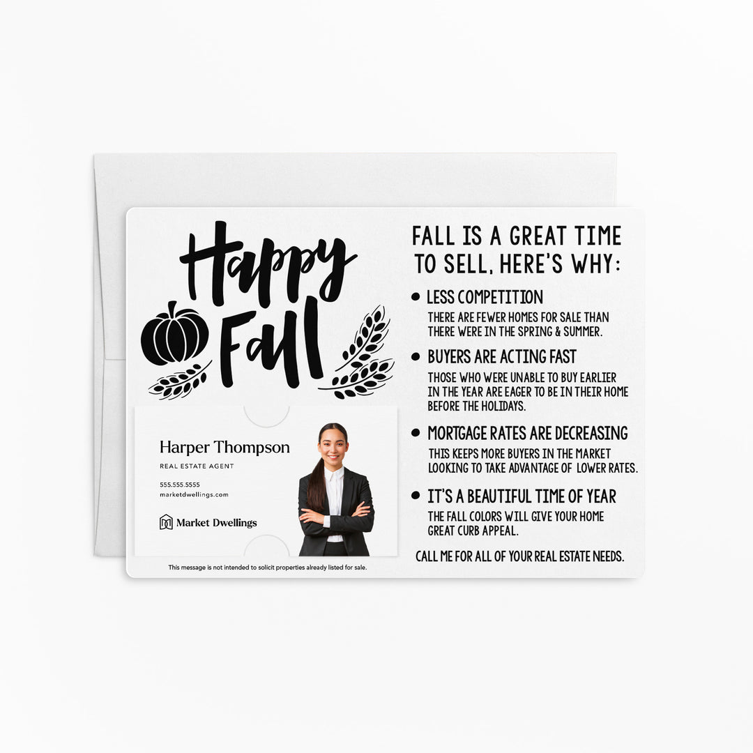SET of Happy Fall Real Estate Mailers with Envelopes | Business Card Mailer | Client Mail | Fall Pop By | Real Estate Marketing | M7-M004