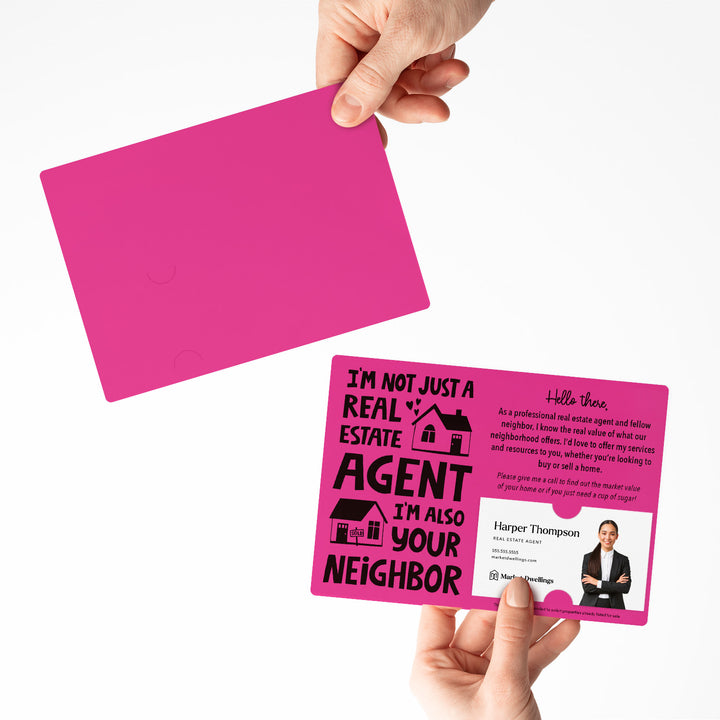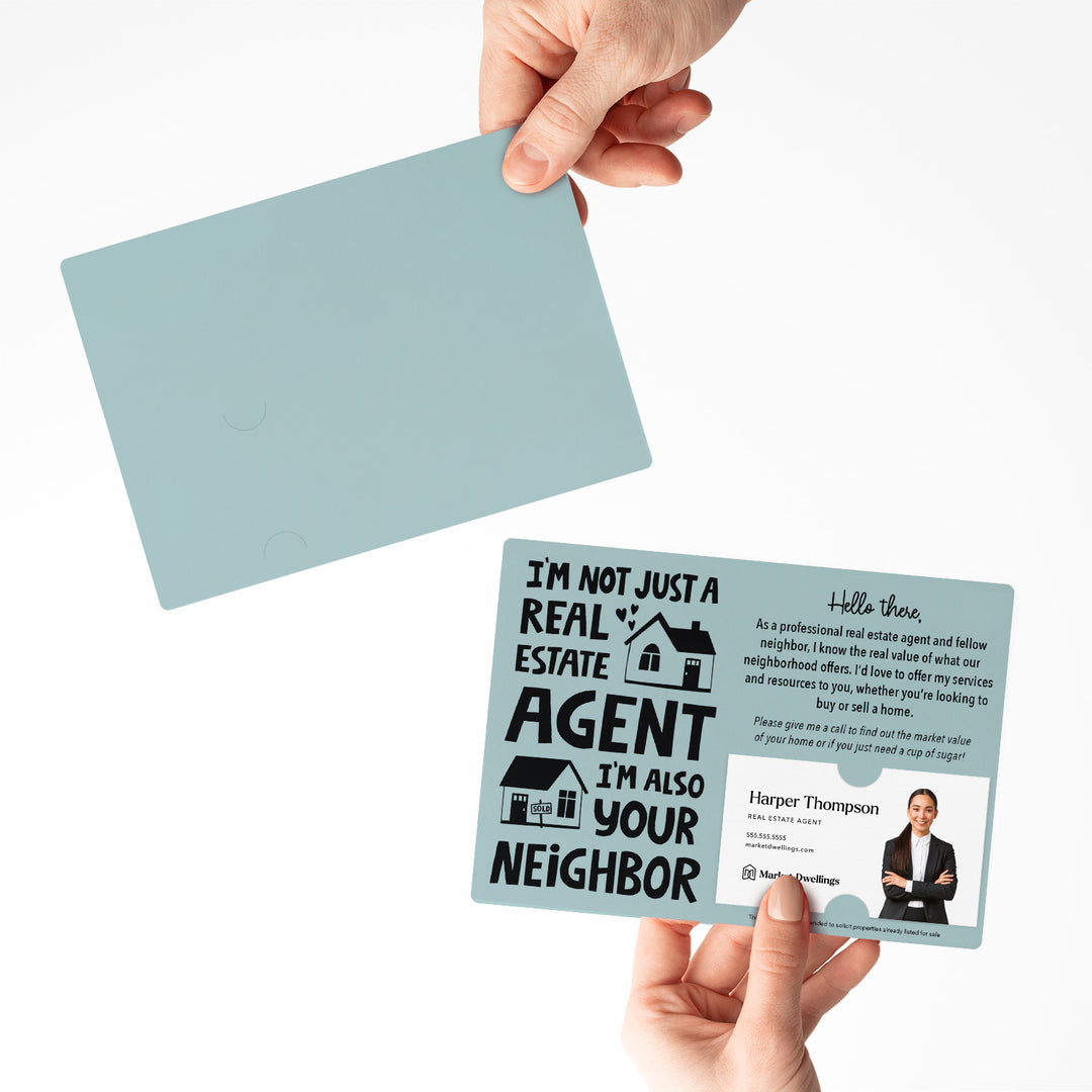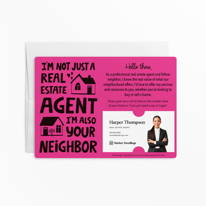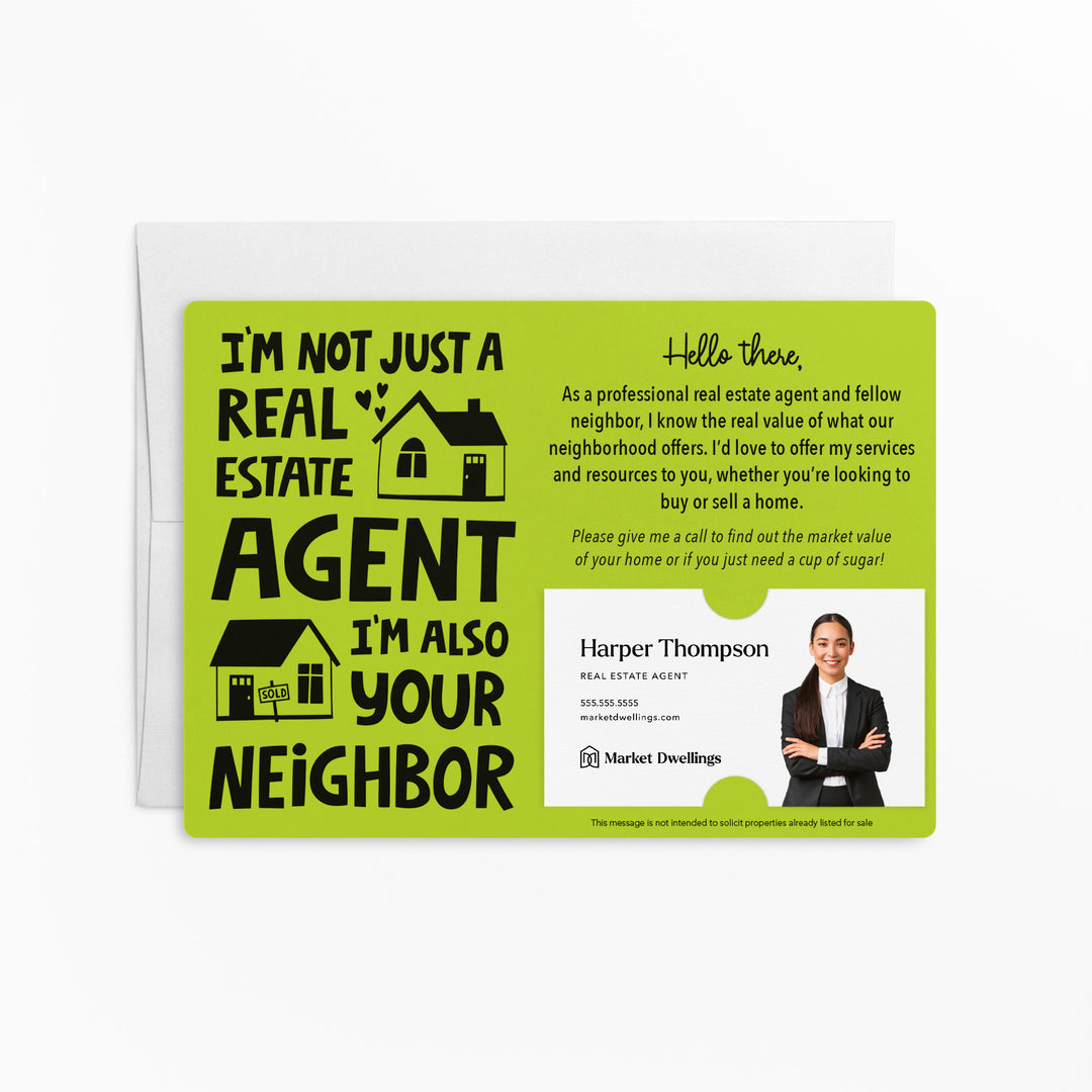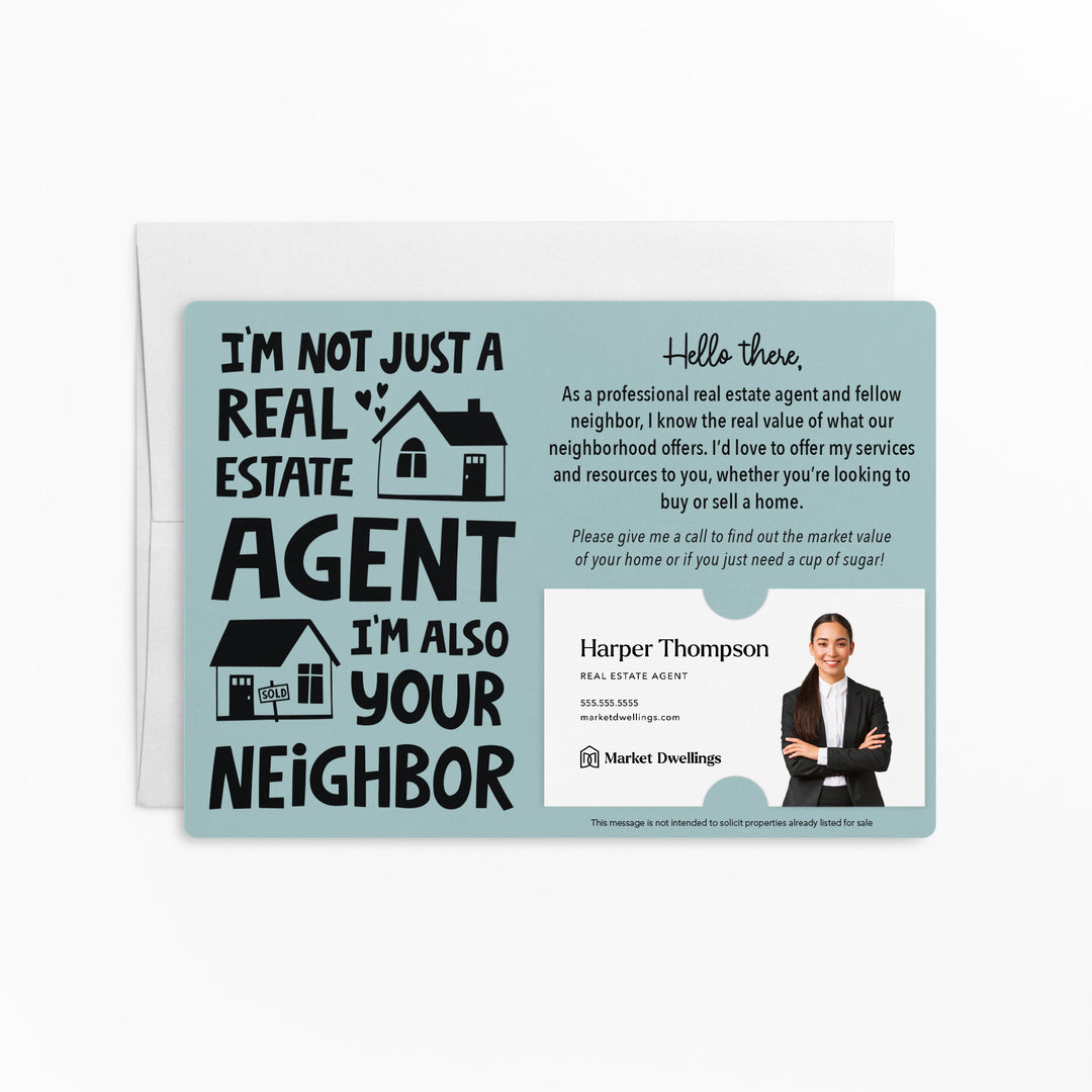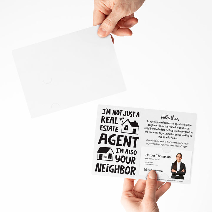 Real Estate Agents: Send these mailers to your neighborhood and let everyone know that you are the BEST person to sell their house because you're their neighbor! Get your business cards in the hands of all of your neighbors! This is a fantastic way to get leads and new listings! A white envelope is included with each card.
