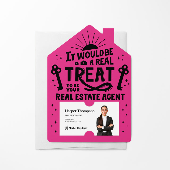 Set of It Would Be A Real Treat To Be Your Real Estate Agent | Mailers | Envelopes Included | M113-M001 Mailer Market Dwellings RAZZLE BERRY
